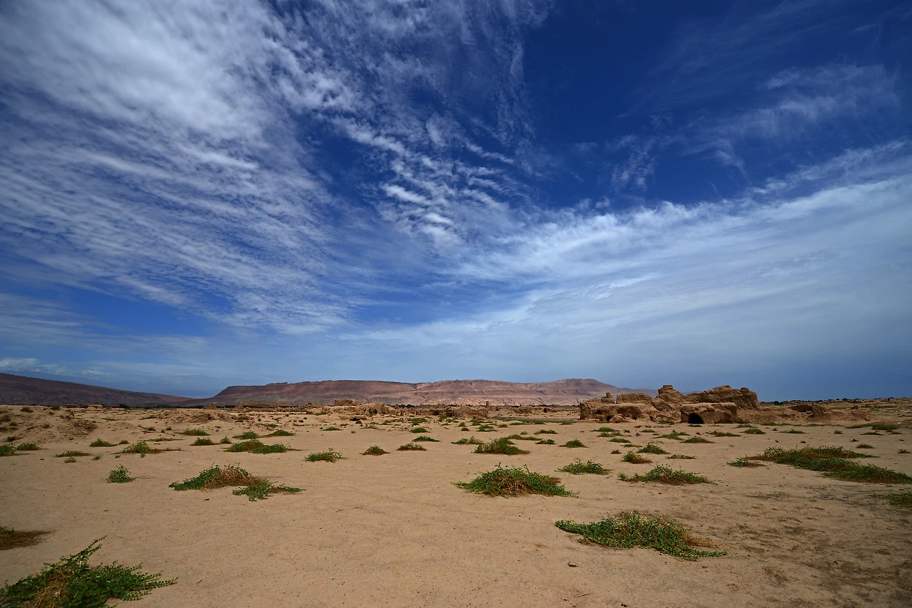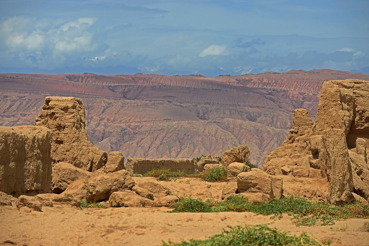 가오창 고성에서 바라보는 훠예산(火焰山)의 모습이 참 매력적이다. 훠예산은 우리가 흔히 생각하는 일반 산과는 그 모습이 많이 다르다. 원뿔형의 우뚝한 모습이 아니라 산맥처럼 길에 늘어진 형태이기 때문이다. 멀리서 보면 마치 붉은 병풍을 길게 펼쳐놓은 것 같기도 하다. 소설 <서유기>에도 등장하는 훠예산은 산 전체를 휘감은 치마 주름 같은 굴곡이 이글거리는 불길처럼 보인다고 해서 붙여진 이름이다. 모습만이 아니다. 한여름, 훠예산의 지표온도는 평균 60도를 넘고, 50여 년 전 투루판 기온이 48도를 기록했을 때는 그 온도가 무려 82도까지 올랐다고 한다. 정말이지 칠선공주의 파초선을 가지지 않고서는 오를 수 없는 산이 아닐까 싶기도 하다.