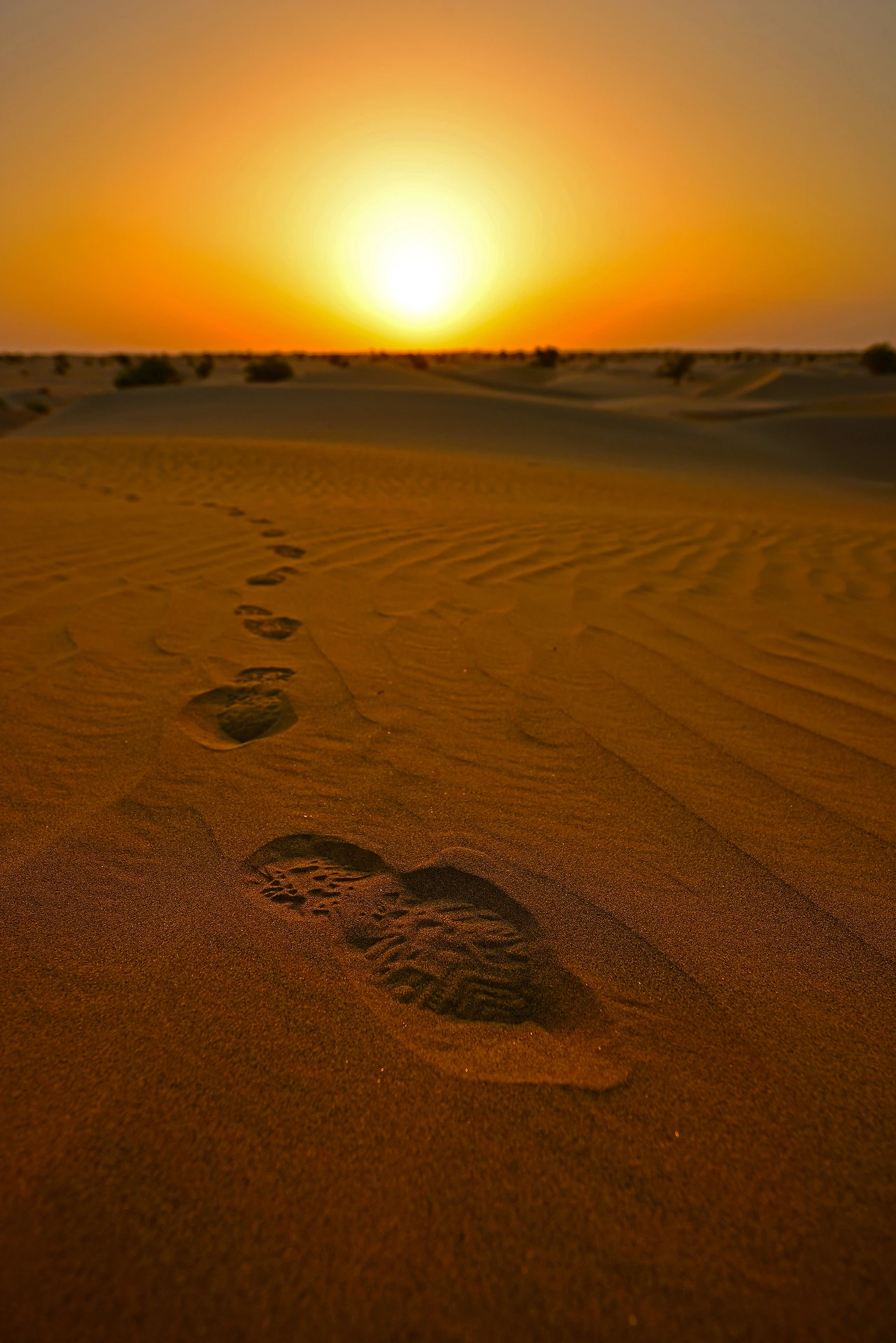 모래언덕의 능선은 잘 벼른 칼날처럼 위태롭다. 올라서기가 부담스러울 만큼. 그 위에 발자국 하나 남겨 본다. 바람 불면 사라져 버릴 여린 발자국이지만 그래도 힘주어 발자국을 남기는 건 앞서가는 자의 의무라는 생각에서다. 실크로드도 그렇게 이어져 왔을 것이다. 바람이 지워버린 발자국 위로 수없이 많은 또 다른 발자국이 더해지면서.