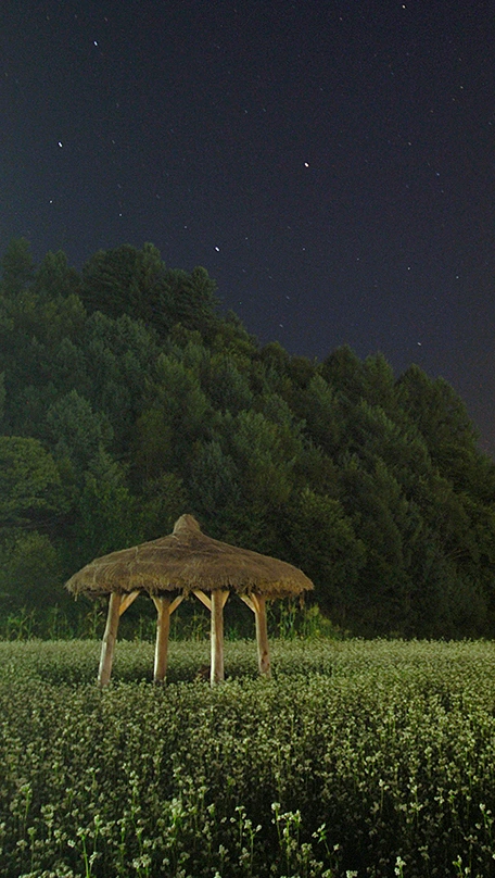 잠깐의 먹먹함이 지나고 마침내 하얀 메밀꽃이 맨 얼굴을 드러냅니다. 순수하면서도 무척 단아한 모습입니다. 너무 선명하지도 그렇다고 너무 흐릿하지도 않습니다. 욕심이 앞선 눈은 어디서부터 어떻게 초점을 맞춰야 할지 안절부절입니다. 덕분에 하늘에 핀 꽃과 땅에 핀 꽃의 구분이 모호해져 버렸습니다. 아니, 하늘에 핀 꽃과 땅에 핀 꽃이 절묘하게 어우러졌다고 말하는 게 더 맞은 표현일는지 모르겠습니다. 달빛에 물든 메밀꽃이, 별빛과 어우러진 메밀꽃이 이리 아름다운지 오늘이 있기 전까지는 솔직히 몰랐습니다. 그래서 오늘, 이 순간은 아주 오래도록 기억될 것 같습니다. 봉평 메밀꽃의 아름다움을 새롭게 발견한 날로 말이지요.