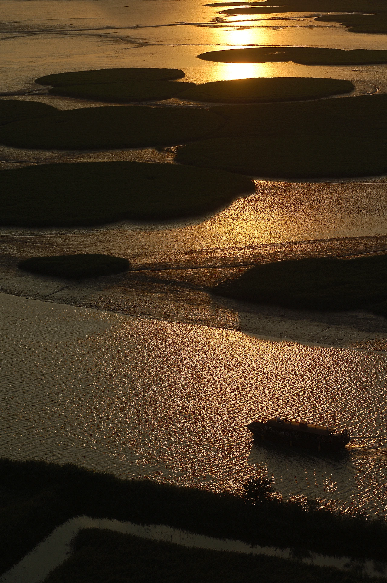 용산 전망대에서 만나는 순천만의 모습은 언제 봐도 장관입니다. 전망대까지는 400개가 넘는 계단을 올라야 하지만 그 정도의 수고로움은 눈앞에 펼쳐진 풍광에 비하면 아무것도 아닙니다. 서두른다고 서둘렀지만 전망대에는 벌써 대여섯 명의 사진가들이 진을 치고 해가 지기를 기다리고 있습니다. 좋은 자리를 차지하기 위한 사진가들의 자리다툼이 보통이 아닙니다. 사진가 한 분이 오늘이 이번 달 중 물때가 가장 좋은 날이라고 살짝 귀띔을 해주시네요. 반신반의하면서도 마음 한 구석에선 은근한 기대가 밀려옵니다.