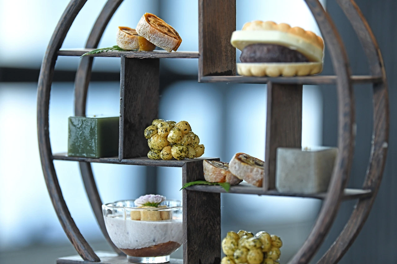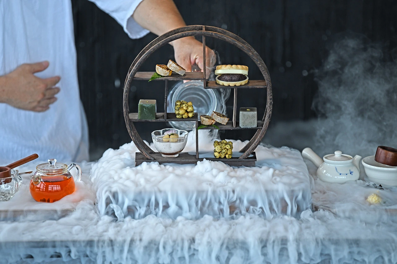 차덕분의 시그니처 메뉴인 ‘스페셜 다과 트레이’는 전통과 현대가 어우러진 미각의 조화를 보여준다. 빛깔 고운 앙버터 모나카와 앙금 판나코타, 호두 곶감말이, 광천김오란다 등 정성스럽게 만든 다과는 둥근 트레이 위에 정갈하게 담긴다. 각각의 다과는 한국적인 재료를 활용하면서도 현대적인 감각으로 재해석해 시각적 즐거움과 풍미를 동시에 전한다. 찻자리에 몽환적인 분위기를 더하는 드라이아이스 퍼포먼스는 차덕분에서만 만날 수 있는 특별한 서비스이다.