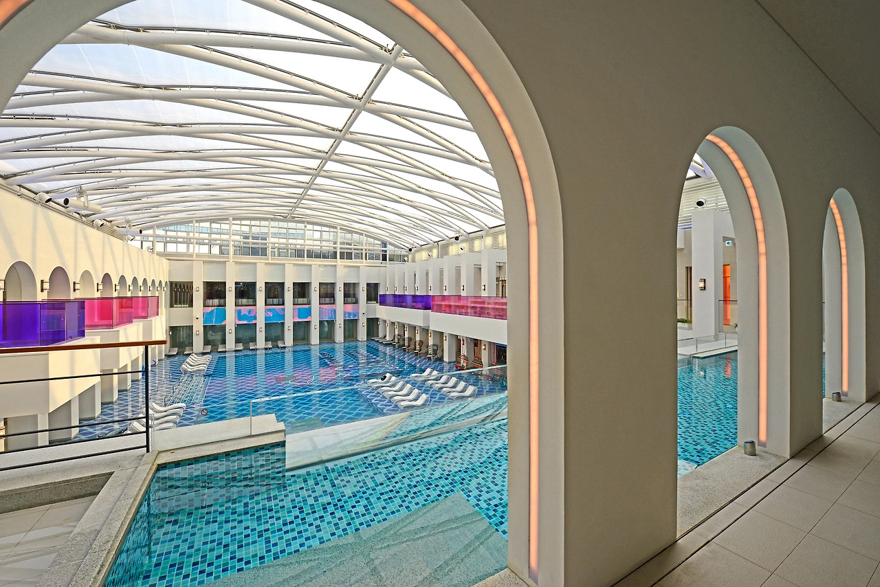인천 영종도에 위치한 파라다이스시티의 씨메르(CIMER)는 전통 찜질방과 유럽식 스파 문화를 접목한 럭셔리 힐링 공간이다. ‘스파’와 ‘찜질’을 결합한 이색 테마의 복합 스파로, 한옥 감성의 찜질존과 아티스틱한 인테리어가 돋보이는 아쿠아 스파존, 인피니티 풀이 어우러져 이국적인 분위기를 자아낸다. 특히 실내외 수영장은 낮에는 햇살, 밤에는 조명과 음악이 어우러지는 감각적인 공간이다. 가족 단위는 물론 커플이나 친구와 함께하기에도 좋다.