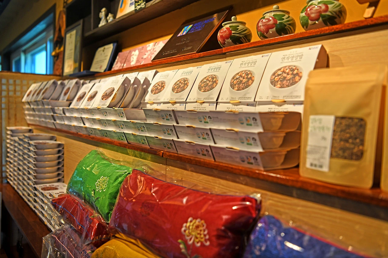 약석원에서는 좌훈 체험 외에도 지역 약초와 국내산 잡곡을 활용한 8종의 영양밥을 제작·판매한다. ‘프로틴 영양밥’, ‘건강 연잎밥’, ‘연자 영양밥’ 등이 대표 상품. 이 중에서 ‘프로틴 영양밥’은 단백질 13g과 식이섬유 7g을 함유한 고단백 제품으로, 열량과 나트륨을 적절히 조절해 좌훈 체험 후 균형 잡힌 식사로 즐기기에 적당하다.