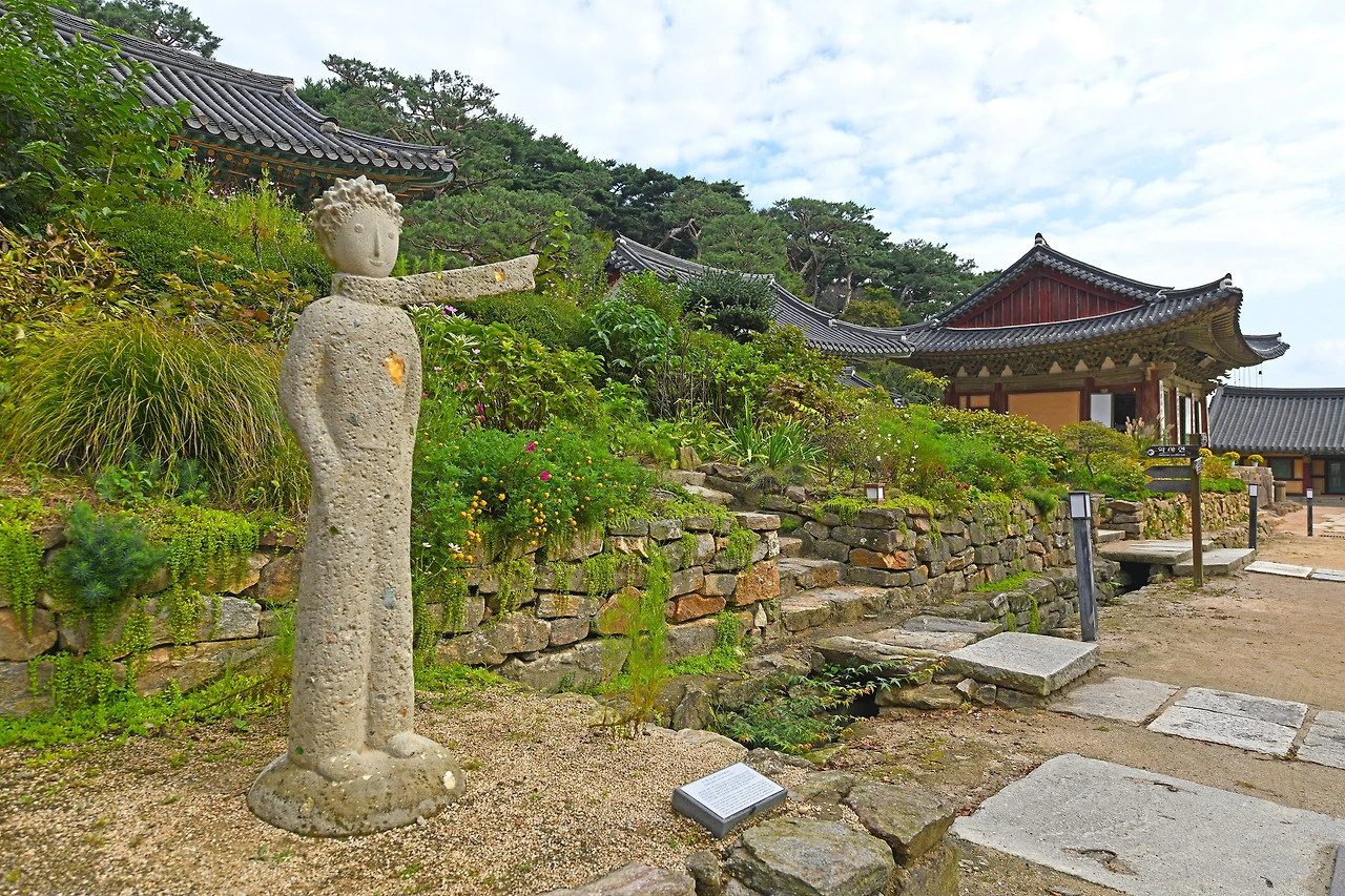 몽운사는 서해 최북단 백령도에 있는 작은 사찰이다. 200년 동안 절집이 없던 백령도에 몽운사가 들어선 건 2005년도의 일. 남북 평화와 심청의 효 사상을 선양하고자 건립했다. ‘몽운’이라는 사찰 이름은 심청전에서 심봉사가 공양미 300석을 시주하겠다고 한 설화 속 몽운사에서 따왔다. 법당 입구에 ‘효행의 집’이라는 편액을 단 이유가 여기에 있다. 법당 옆에는 거대한 발우가 전시돼 있으며, 야트막한 언덕 위에 5층 석탑과 해수관음상이 당당한 모습으로 서있다. 장산곶 너머 북한의 평양을 바라고 선 해수관음상은 높이 9m에 무게가 25t에 이른다. 주민 90% 이상이 기독교 신자인 백령도는 사실 불교와도 오랜 인연을 간직한 섬이다. 국립문화재연구소는 지난 91년부터 10여 년 간 군사보호구역의 문화유적을 조사해 백령도에서 ‘연화리사지’를 발견했으며, 동국대학교 발굴 팀은 통일신라시대 것으로 추정되는 호신불을 발굴하기도 했다. 사찰 마당에서 방목하는 공작들은 몽운사의 또 다른 명물이다.