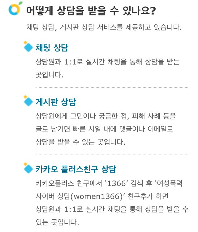 성폭행 외에도 데이트 폭력, 직장 내 성추행, 성매매에 관해서도 도움을 받아 보실 수 있습니다.
