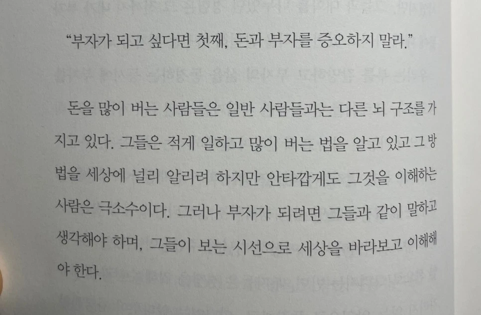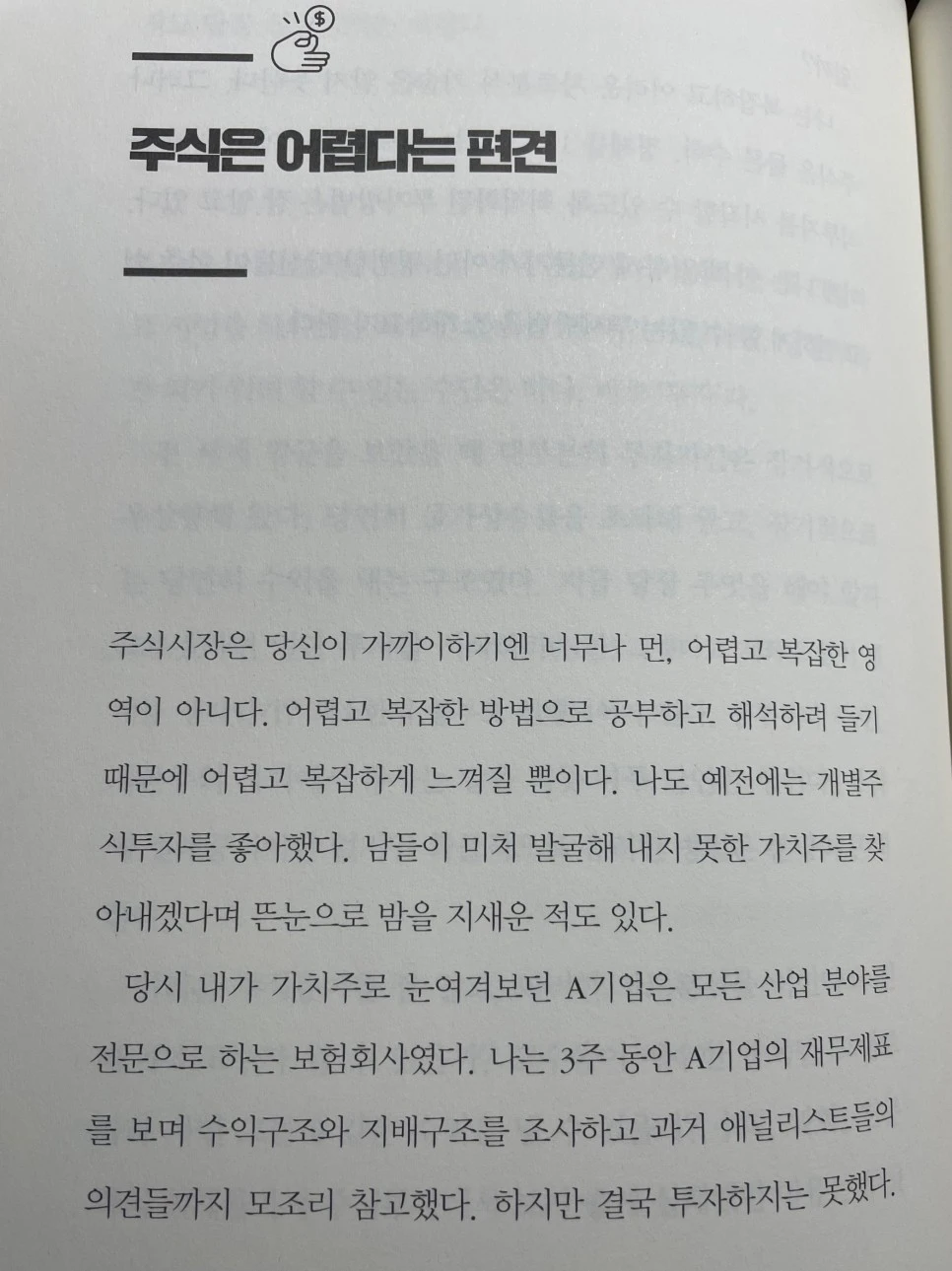 나는 주식에 대해서 잘 알지도 못했지만 이 책이 쉽게 읽혔다. 왜 그런지 생각해 보니 오로지 주식에만 초점을 둔 책이라고 하기보다는 경제적인 자유로 가기 위해서 저자가 어떤 노력을 해야 하는지를 스토리로 녹여냈기 때문이었다. 물론 주식 내용도 많이 나오지만 가장 두드러진 내용들은 부자가 되기 위해서 저자가 실천한 노력들이었다. 월급 140만 원을 받았으면 110만 원을 저축했고, 부자가 되기 위해 어떤 마인드를 가지게 됐으며, 어떤 책들을 읽게 됐고, 지식으로 아는 것보다 실천이 얼마나 중요한지 등 다 흥미로웠던 이야기들이었다.