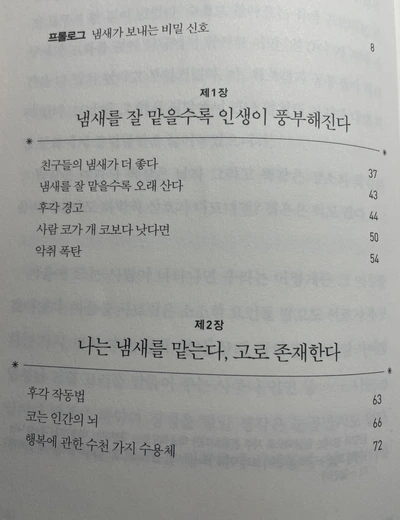 이 책은 가볍게 심리학 책을 읽는다고 생각하면 좋을 것 같다. 후각에 대해서만 내용을 정리하지 않고, 심리학 분야에서 다방면으로 설명하고 있다. 행동 심리학에서 접할 수 있는 고전적 조건 형성과 조작적 조건 형성 내용도 나오고, 자기 효능감에 대한 내용 그리고 행복에 대한 이야기도 나온다. 가장 인상 깊었던 행복에 대한 이야기는 대부분 행복에 대해서 이야기하는 유명한 사람들의 말과 동일해서 기억에 남는다. 이런 식으로 여러 가지 내용을 접할 수 있다는 점에서 대중서로써는 괜찮다고 생각한다.