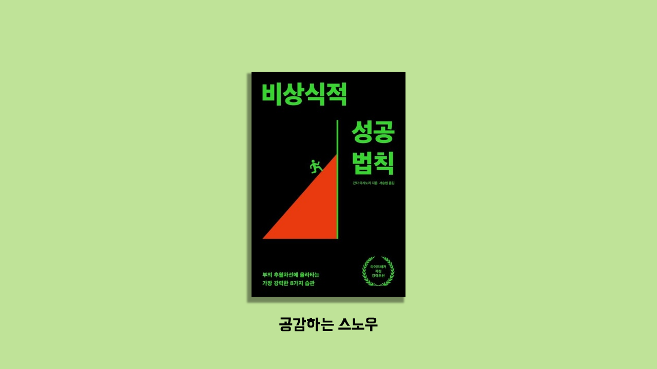 짠부님은 팟빵에서 책 추천을 많이 한다. <돈의 심리학>, <역행자>, <더 버는 내가 되는 법> 등 주로 자기개발이나 경제에 관련된 책을 추천해 준다. 근데 최근에 강력하게 추천해 준 책이 있었다. 그것은 바로 <비상식적 성공법칙>이었다. 이 책이 담고 있는 내용이 소름 끼치게 일치한다며 팟빵을 듣는 사람들에게 꼭 읽어보라고 당부까지 했다. 그렇지 않아도 독서모임에서 <비상식적 성공법칙>이라는 책이 원래 절판된 책인데 찾는 사람이 많아서 중고 판매가가 50만원에도 판매가 되었다고 했다. 300페이지도 안 되는 책이 50만 원이라니. 참을 수 없었다. 바로 읽어보았다.