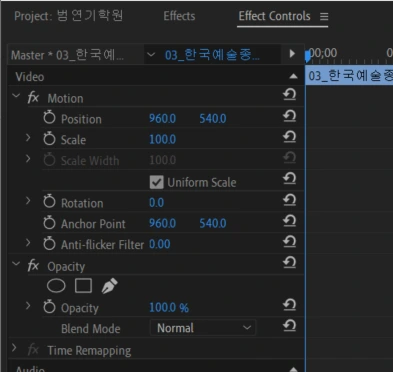 2) 좌측에 Effect Controls를 눌러주세요.