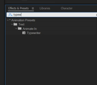 7) 레이어가 클릭된 상태에서!!!! Effects&Presets 창에서 typewriter를 두 번 클릭하면 적용 완료~