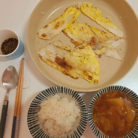 두 번째도 주재료가 배추인데, 바로 수제비와 함께 나왔던 배추전이다. 방법도 아주 간단하다. 밀가루와 물, 배추, 소금, 찍어 먹을 양념간장만 있으면 충분하다. 배추를 밀가루 반죽에 골고루 묻힌 뒤 데워진 기름 두른 프라이 팬에 올리면 치이익 하는 소리와 함께 노릇노릇 익어간다. 완성 후 한 입 베어 물면 달짝지근한 배추의 맛과 밀가루의 고소한 맛이 느껴져 맥주 한 잔이 그리워진다.