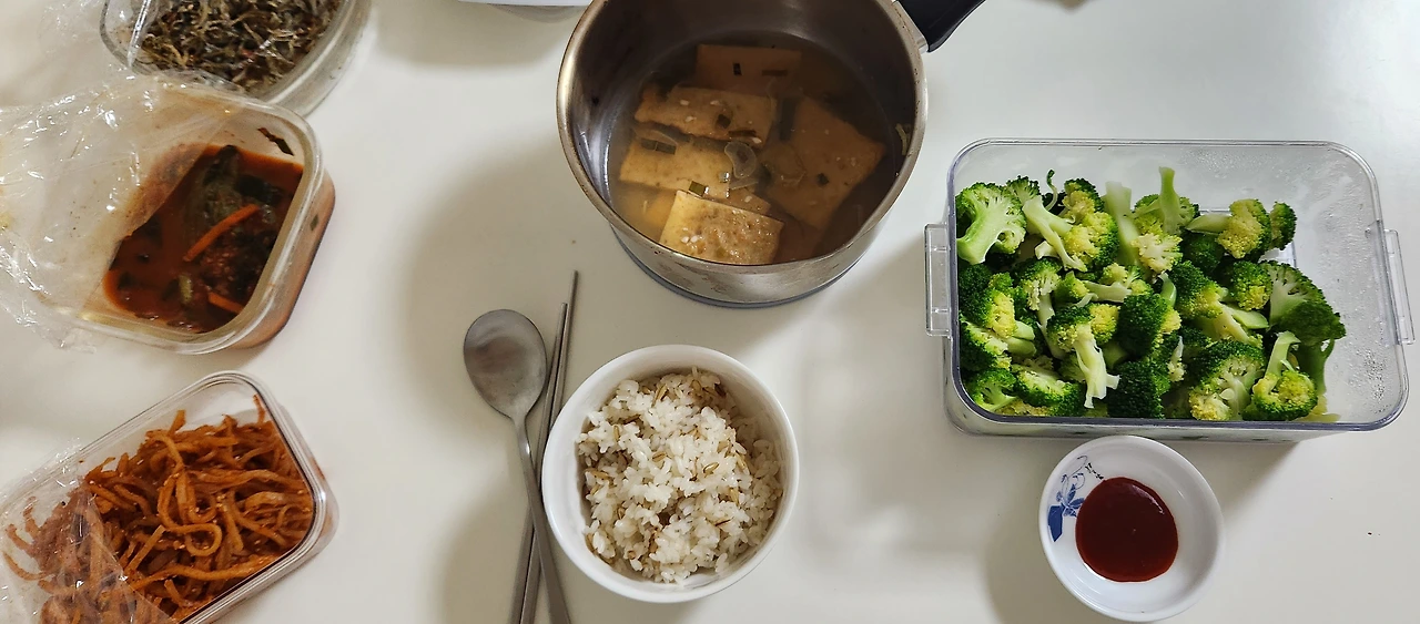 나는 먹는 것에 그다지 민감하지 않다. 정말 심하게 맛없다 싶은 게 아니라면 뭐든 잘 먹는 편이다. 매운 것만 못 먹는다. 그리고 패스트푸드 같은 것보다 한식을 좋아한다. 특히 점심을 한식으로 든든히 먹어야 하루를 잘 버틸 수 있다. 혼자 있을 때 배달음식을 시켜 먹은 적은 한 번도 없다. 밥 대신 라면을 먹은 적도 없다. 밖에서 사 먹은 적은 (너무 피곤했던 날) 딱 한 번 있다. 웬만하면 항상 집에서 해 먹는다는 뜻이다. 전용면적이 대략 10.5평 정도 되는 넓은 원룸이라 주방이 크고 환기도 그럭저럭 되는 편이라 음식을 해 먹기에 괜찮아서 다행이다.