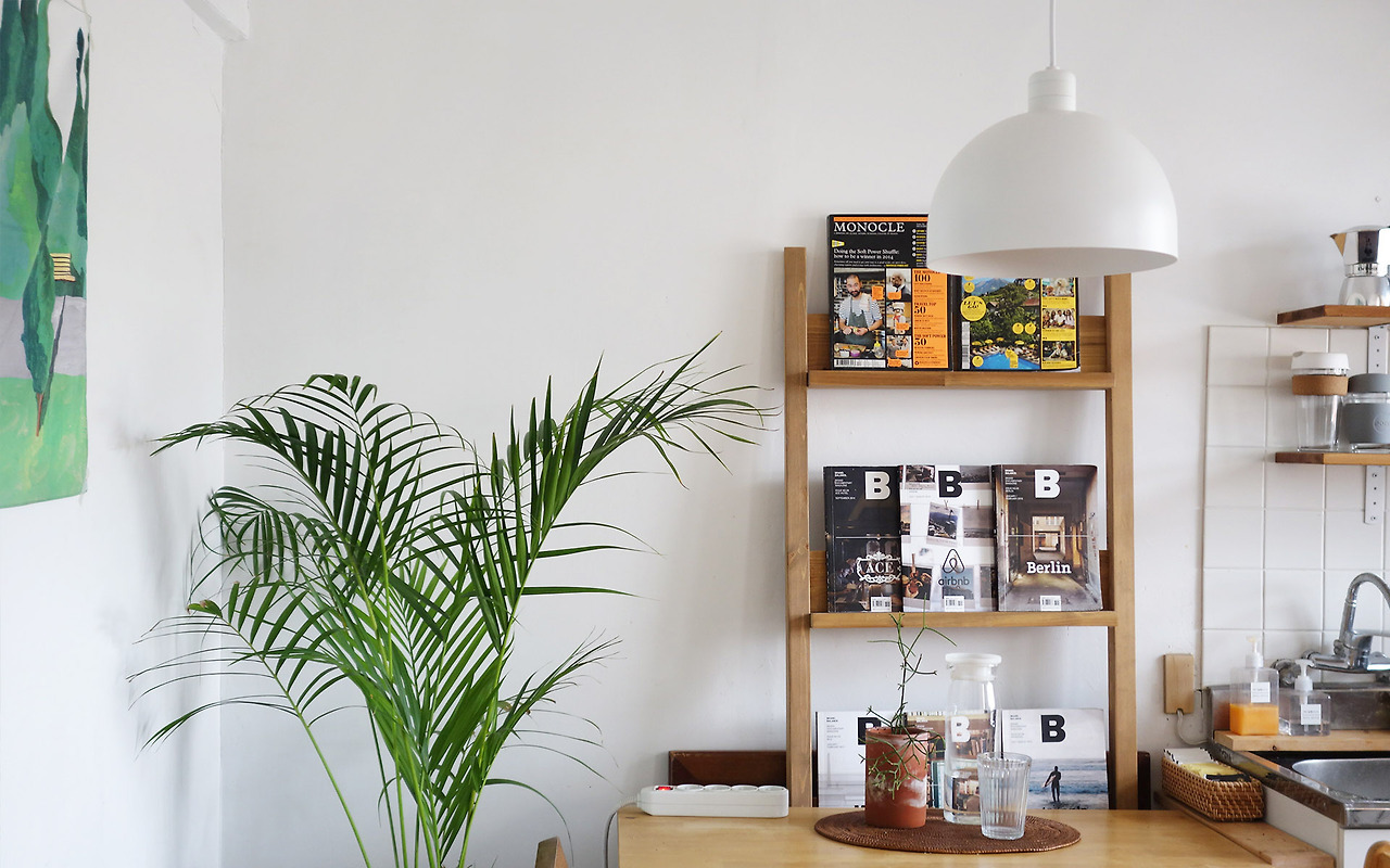 이 밖에 팬던트 전등을 새로 달고, 사다리 선반을 만들고, 종로 꽃시장에서 키가 큰 야자나무도 사다 놓았다.