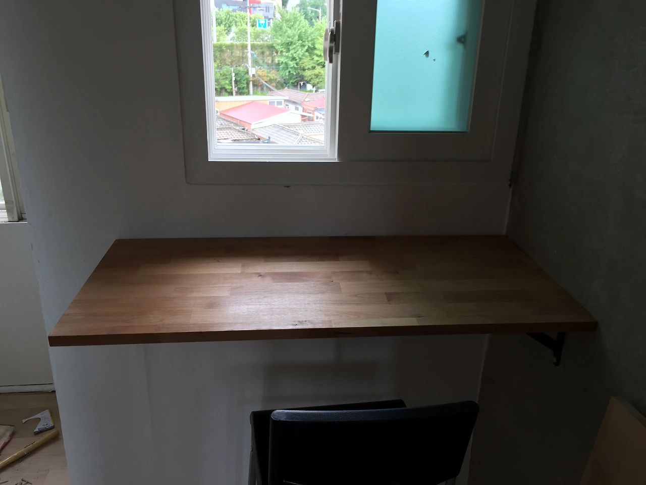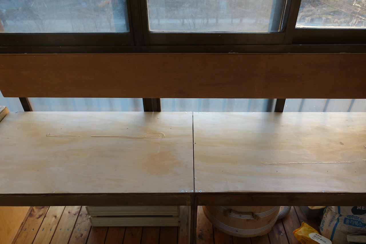 창 밖을 보며 맥주 한잔 할 수 있는 바 테이블을 만들었다. 만들고 보니 두꺼운 샤시로는 풍경을 보는 기분이 들지 않아 유리 창문도 새로 만들어 달았다.