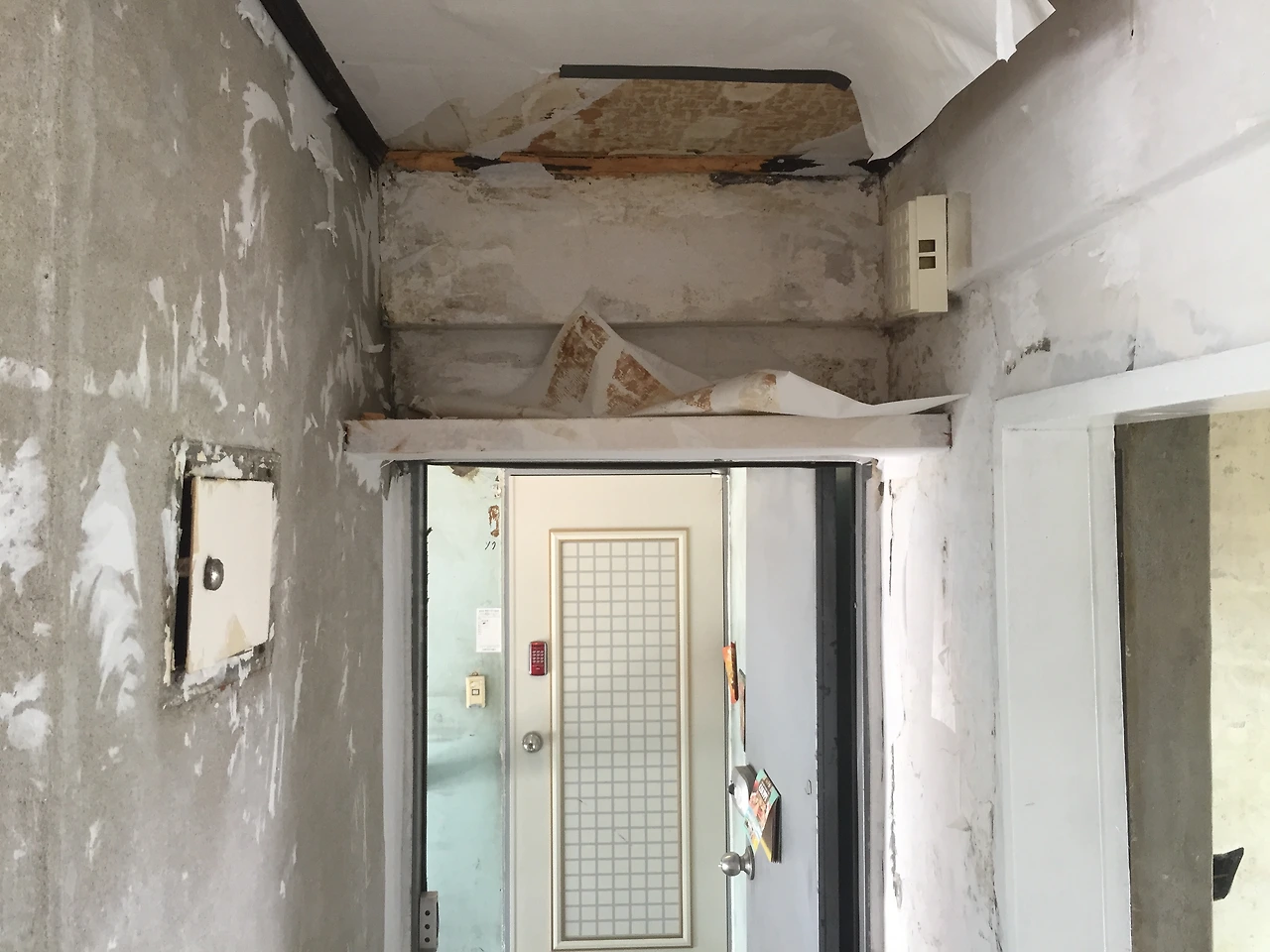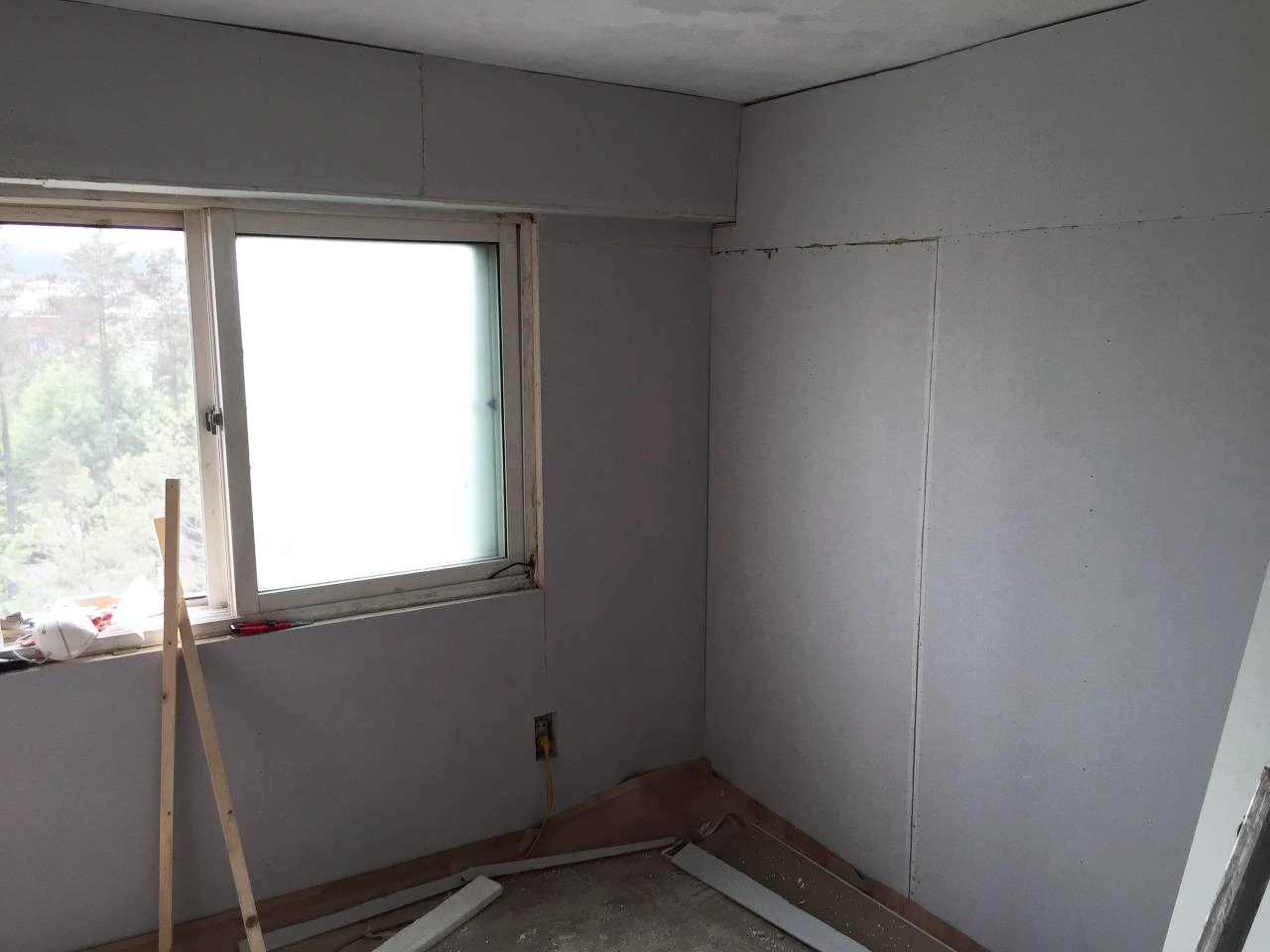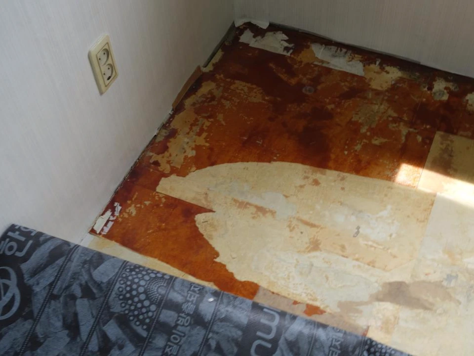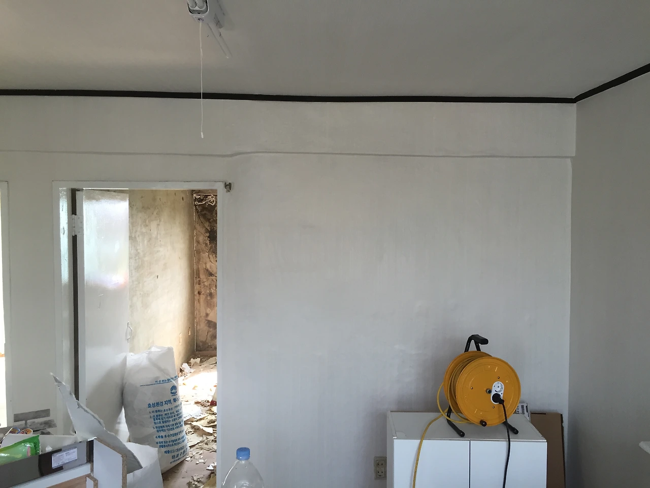 바닥에 장판을 거두고 벽과 천장의 벽지를 떼어냈다. 특히 오래된 벽지가 잘 떨어지지 않아 애를 많이 먹었다.