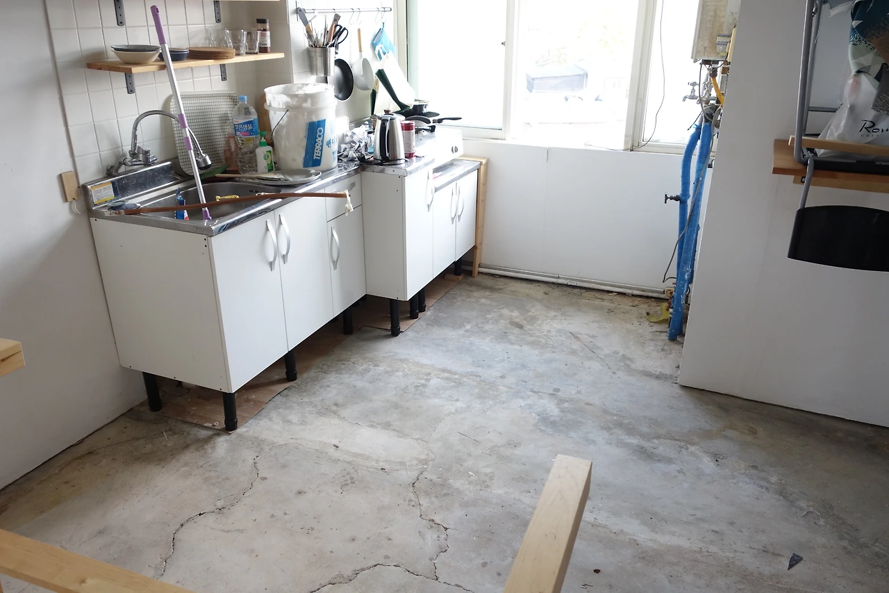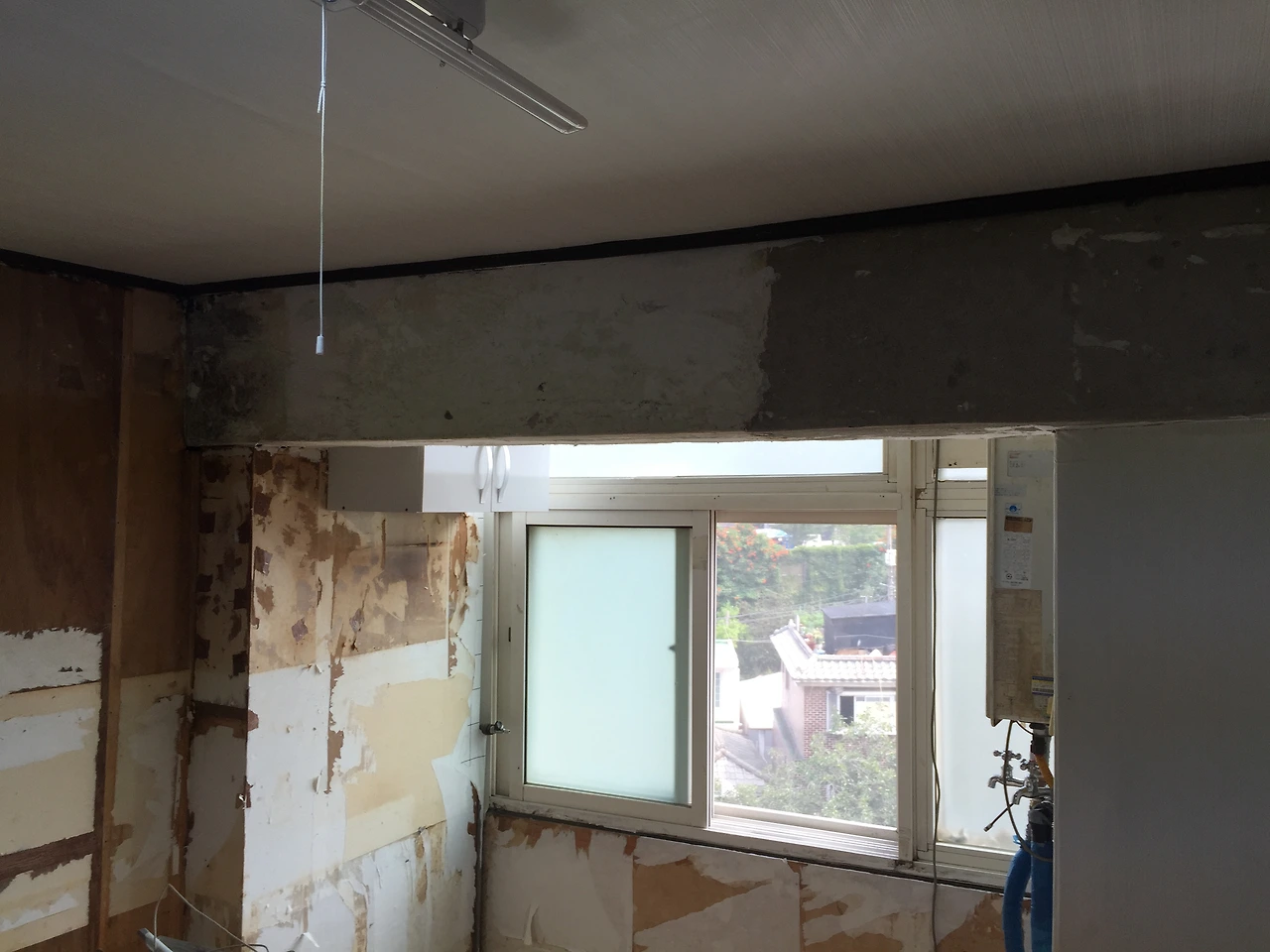 싱크대 일부와 상부장들을 떼어내었다. 거슬리던 벽지도 다 떼어냈다. 5겹이상 덧발린 벽지는 그간의 세월을 말해주었고 벽면 가까이에서는 1970년대에 발행된 신문을 발견하기도 했다.