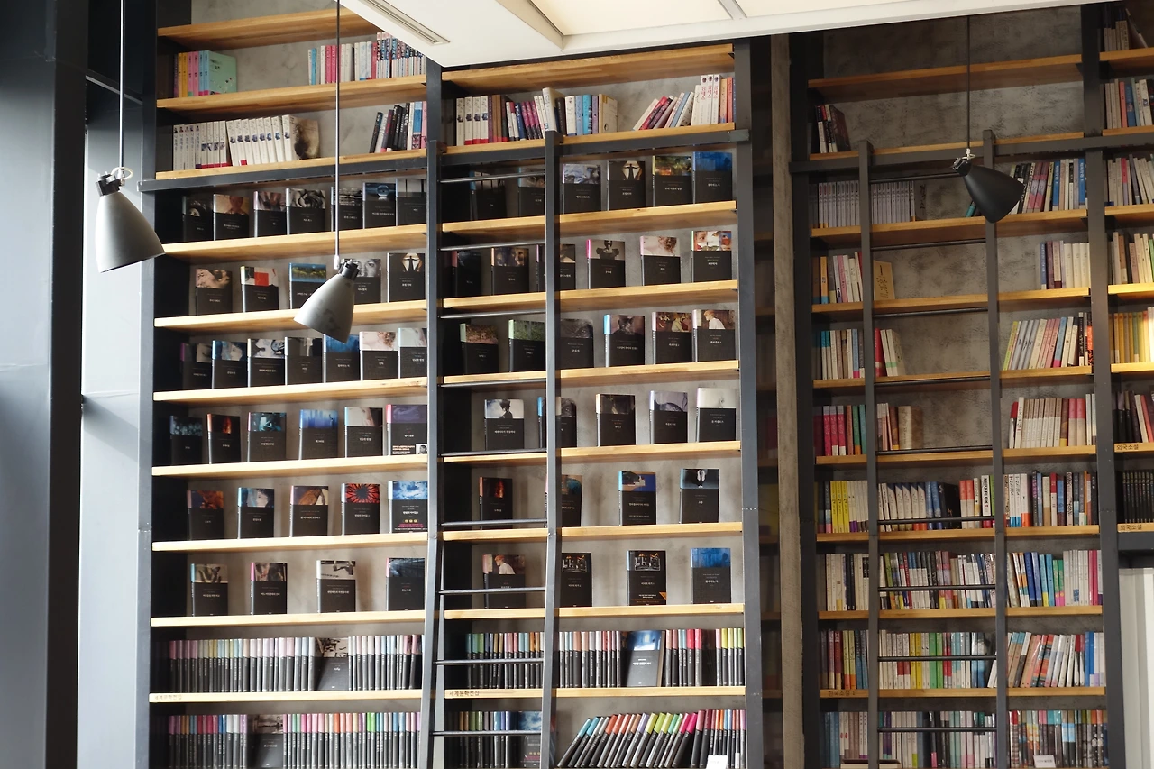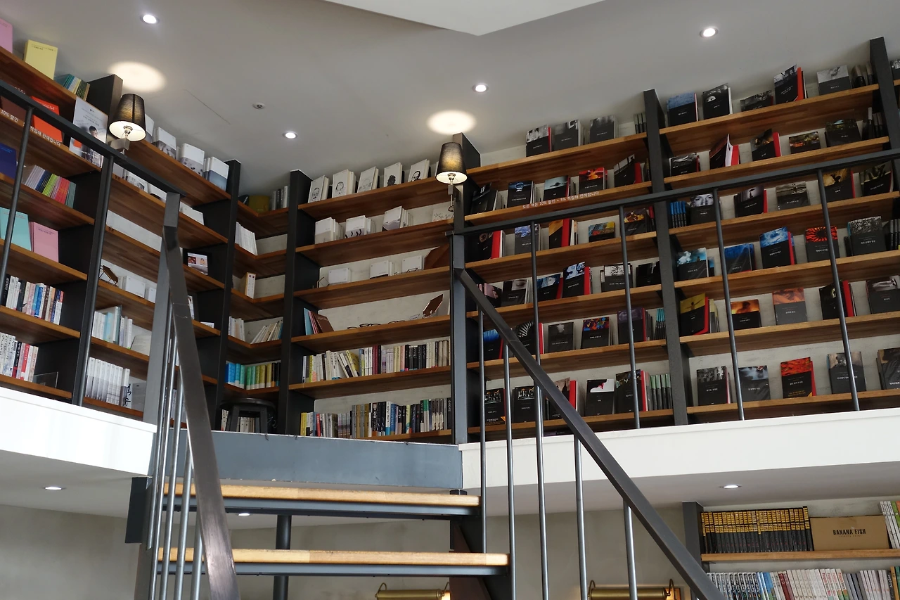 본관에는 문학작품과 에세이 분야의 책이 있고 별관을 지나 회랑 올라가는 길에 사회과학, 만화 등 분야별로 책들이 정리되어 있다. 본관의 책장이 높아 사다리가 비치되어 있지만 아직까지 사람들의 시선을 등에 느끼며 사다리를 타고 올라갈 만큼의 용기를 내본적은 없다.