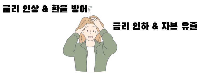 사실 피할 수 없는 '정답'입니다. 외국 자본의 이탈을 최소화하면서 외환 보유고도 아끼는 방법이 바로 기준금리의 급격한 인상이죠. 연준 속도에 맞춰 남은 4번의 금융통화위원회에서 적어도 1.5% 정도는 올려야 '안정권'이라고 할 수 있습니다.