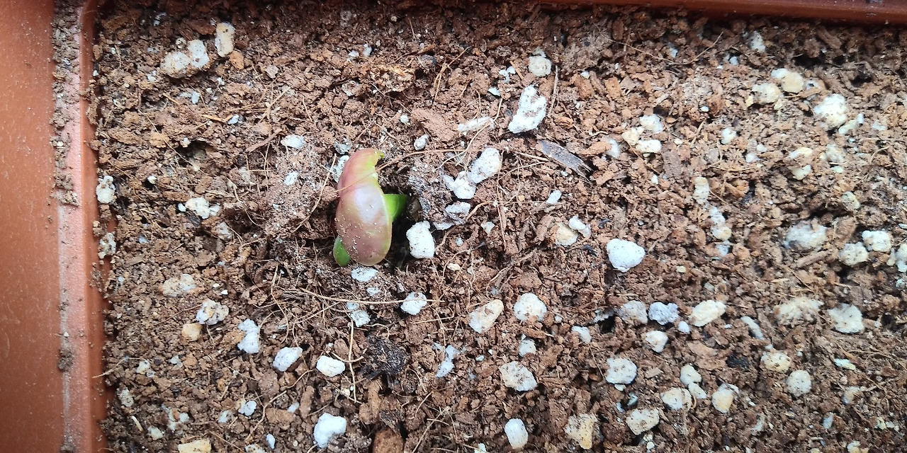 그리고 방금 전에 나가보니 또 하나가 발아하여 어느새 떡잎이 두 장이나 나왔다. 햇살을 향해 어린 잎사귀를 활짝 펼치고 있다.