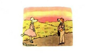 한 줄 내용 요약 중 ‘우여곡절 끝에’에 주목한다. 요약 대로 그 끝에는 사랑하는 연인과의 만남이 기다리고 있지만 티프키가 겪는 ‘우여곡절’은 거의 호러에 가깝기 때문이다. 티프키를 고난에 빠뜨리는 장본인은 점쟁이 오리 부인을 시기하는 암탉 부인이다. 암탉 부인의 농간에 빠진 티프키는 암탉이 쏜 이상한 화살을 쫓아 홀린 듯 따라간다. 암탉의 화살은 티프키를 양산을 들고 들판에 서있는 날씬하고 우아한 아가씨에게로 안내한다. 하지만 양산을 쓴 아가씨는 얼굴 없는 지푸라기 허수아비다. 미야자키 하야오의 애니메이션 <센과 치히로의 행방불명>에 나오는 ‘가오나시’가 떠오른다.