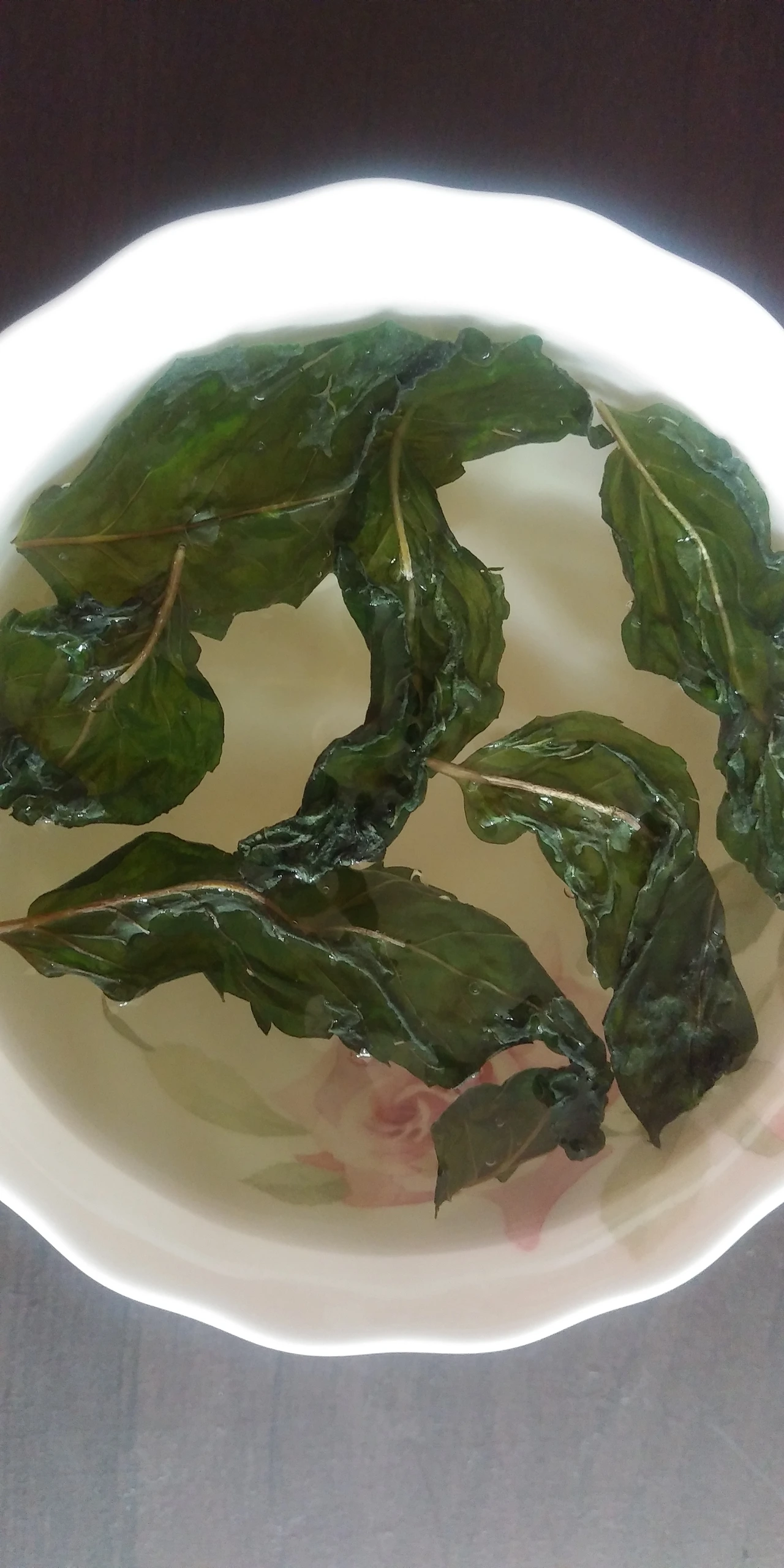 박하 잎을 따서 깨끗하게 씻은 뒤 하루동안 말렸다. 그리고 프라이팬에 박하 잎사귀를 덖어보았다. 아직 생잎 느낌이 나는 덖은 차는 다시 말려놓고, 그래도 잘 덖어졌다 싶은 찻잎을 골라 끓인 물을 부어 마셔보았다.