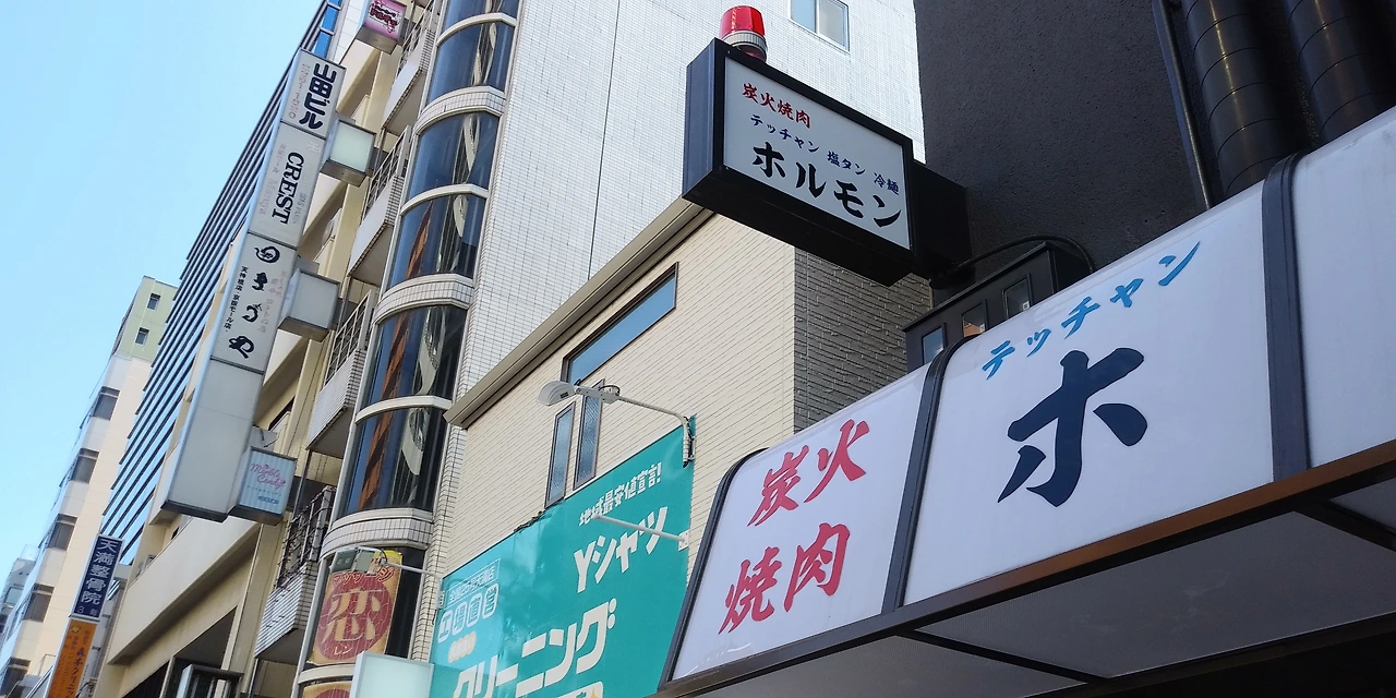 가타카나로 대창이라고 쓴 고깃집이 보였다. 옛날에는 곱창이건 대창이건 모두 버려서 <ホルモン>이라고 했다는데 여기서 곱창집을 보았다.