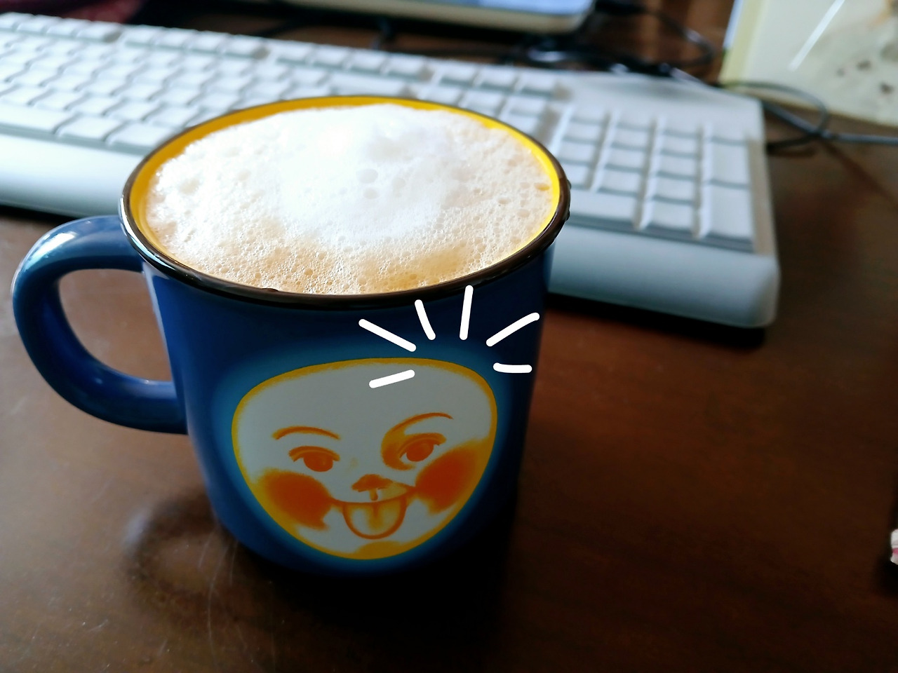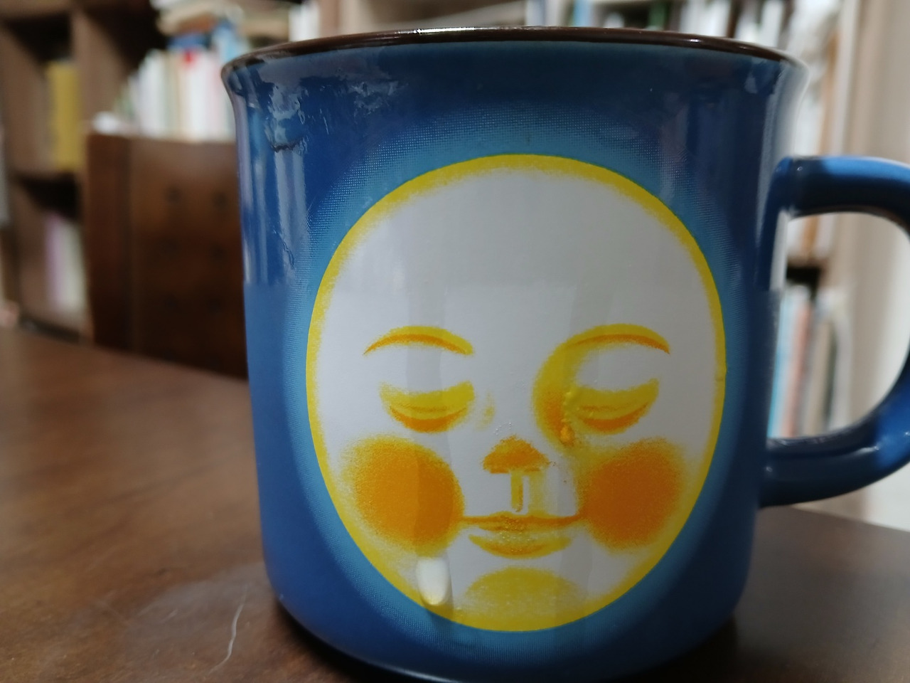 맛있었다. 이 컵은 일본에 갔을 때 친구가 준 하야시 아키코의 그림책 <달님 안녕> 캐릭터 컵이다. 나는 오늘 오전에 이 컵에 카페라테를 타서 마셨었다.