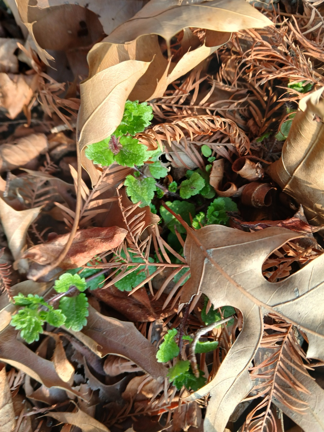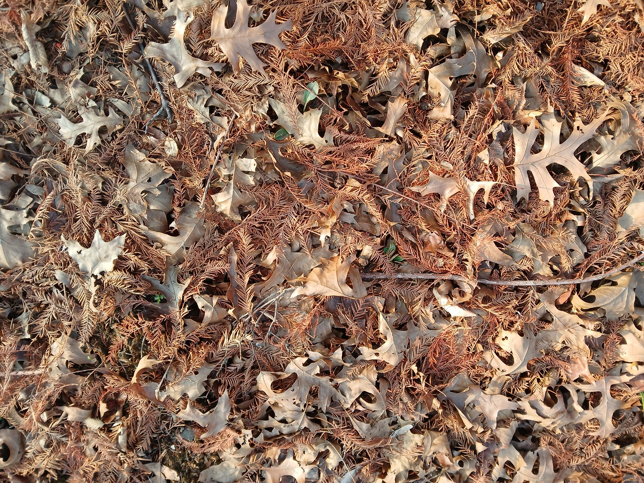 바싹 마른 잎사귀 틈 사위로 올라온 초록 나무 잎사귀도 싱그러웠다.