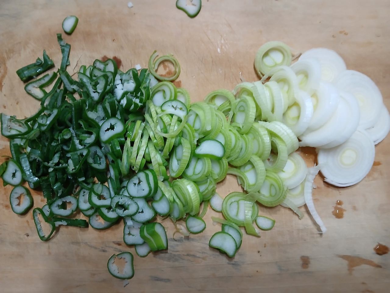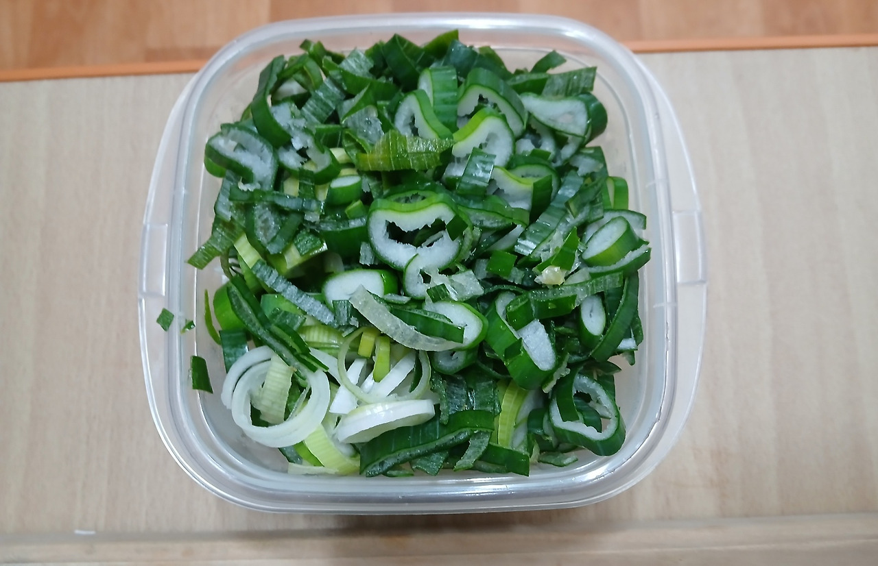 보통 때 같으면 대파용 전용 비닐봉지 채로 시원한 곳에 두고 필요할 때마다 하나씩 하나씩 꺼내 쓰는데, 오늘은 대파를 잘게 썰어 냉장고에 넣어두었다가 필요할 때마다 꺼내 쓰고 싶다는 생각이 든 것이다. 그래서 대파를 썰었다. 송송송 썰었다. 많이 썰었다. 굵은 대파 하나만 썰어도 도마 위로 가득했고 두 개를 썰으면 중간 크기의 통이 가득 찼다. 참으로 옹골진 대파였다.