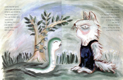 그럼 ‘좀 별난 친구’라는 우리말 번역 제목은 어디서 왔을까. 고양이가 뱀과 함께 집으로 돌아온 것을 본 할머니가 “얘야, 좀 별난 친구를 데려왔구나.”하는 말에서 가져왔다. 할머니는 이어서 “생선 한 마리는 날것으로 그냥 주면 되지?”라고 말한다. 이보다 더 좋은 해피엔딩이 어디 있단 말인가. ‘생선을 날 것’으로 먹고 ‘좀 별난 친구’ 이지만 고양이가 진짜 친구를 찾아서 정말 다행이다!!!