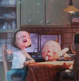 하늘에는 먹구름이 가득하고 방안도 어둡다. 갑자기 무서워진 남동생이 누나 방을 찾아가지만 컴퓨터 앞에 앉은 누나는 남동생은 상대도 안 해준다. 그러자 동생은 함께 놀 동생을 원한다.