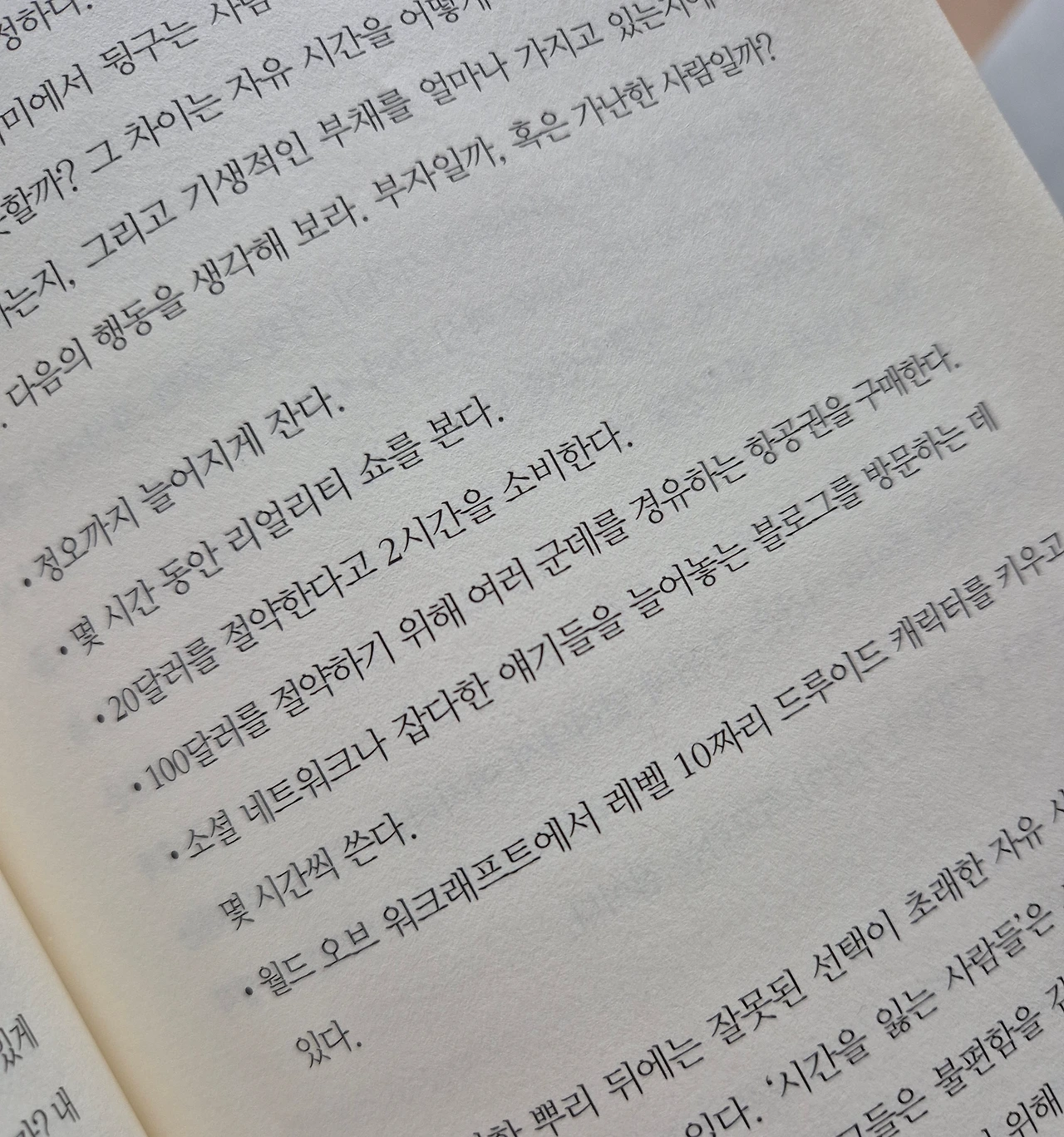 우선 이름부터 자극적이다. 부의 '추월차선'이라니. 실제로 엠제이 드마코는 부로 가는 길을 '인도', '서행차선', '추월차선'으로 나눠 안내한다. 단순히 '부자가 되는 것'이라는 결과에 집중하는 것이 아니라 더 빠른 시기에, 더 젊은 나이에 풍요로운 삶을 즐길 수 있도록 빨리 가는 길에 대해 이야기한다. 이 대목에서 나는 어느 길에 서있나를 되짚어 보게 되는데 약간 엠제이 드마코한테 내 치부를 들키는 느낌이라 솔직히 썩 유쾌하지는 않다. 그가 가난한 사람들이 하는 행동이라고 말하는 것들이 일상적인 내 모습이고, 내가 부자가 되고 싶어서 기웃거리고 있는 행동들이 고작 인도에서 서행차선으로 갈아타려고 애쓰는 것 같아서.