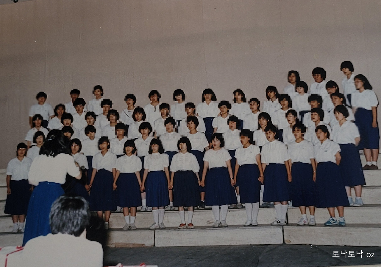사진첩을 뒤지다가 그 합창대회 사진을 찾았어. 고1 때 기억인가 봐.