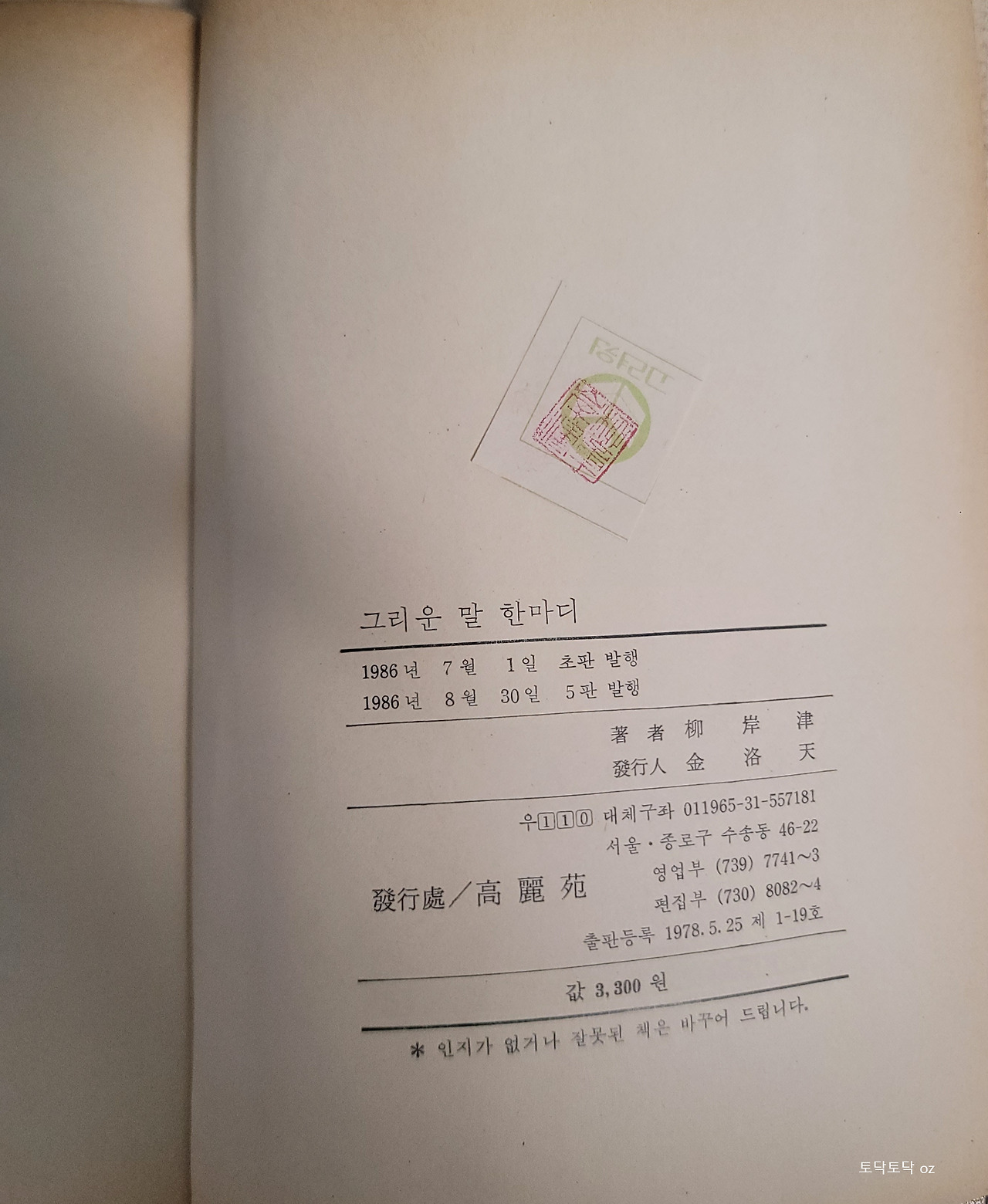 요즘 책들과는 달리 글자 크기도 작고, 줄간격도 좁고, 인지(印紙)도 붙어 있어.