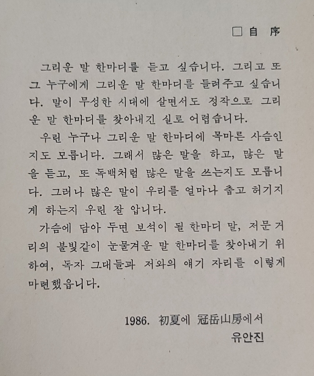 [그리운 말 한마디] – 유안진 (1986년, 자서 중)
