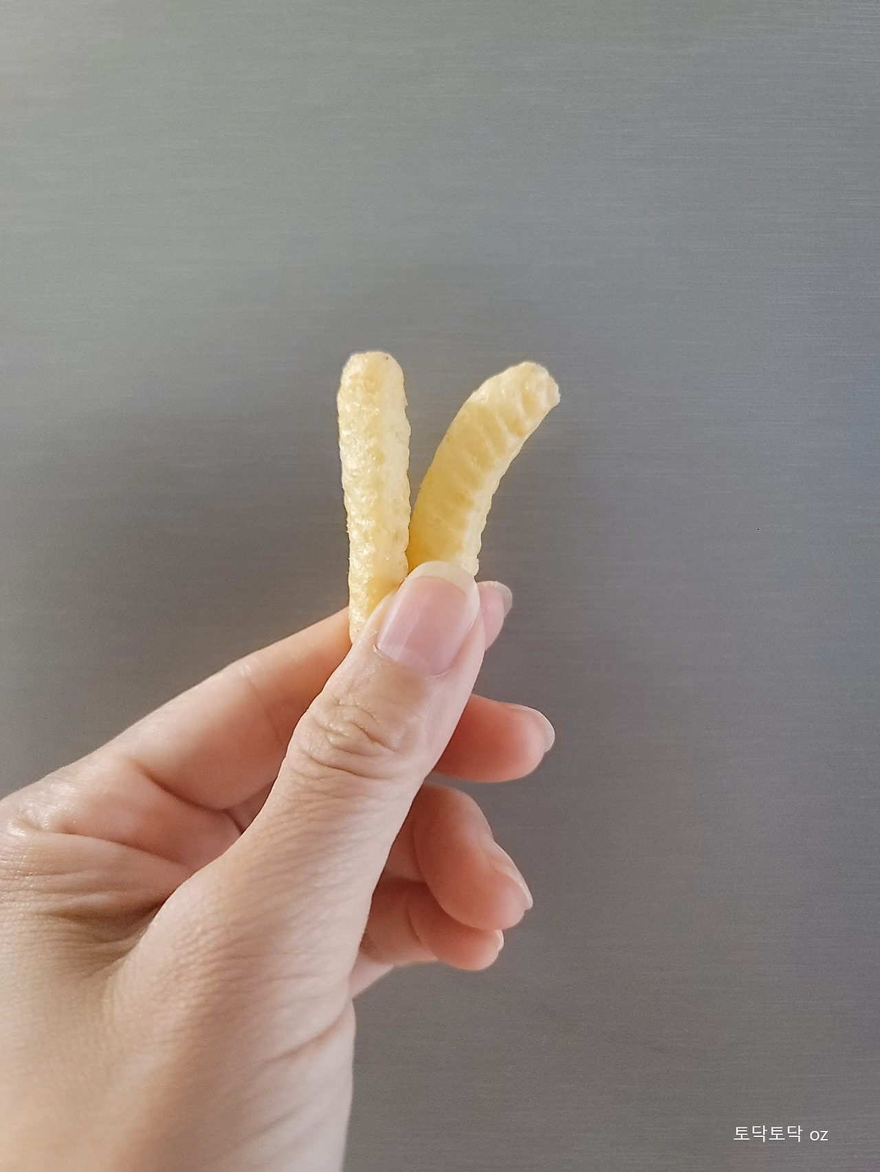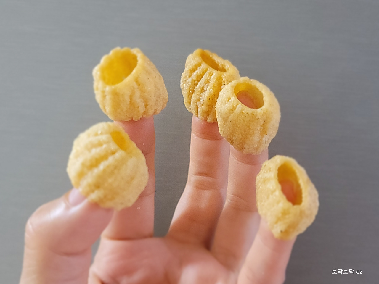 내가 손가락에 짱구과자를 끼워 하나씩 빼먹고 있으니까,
