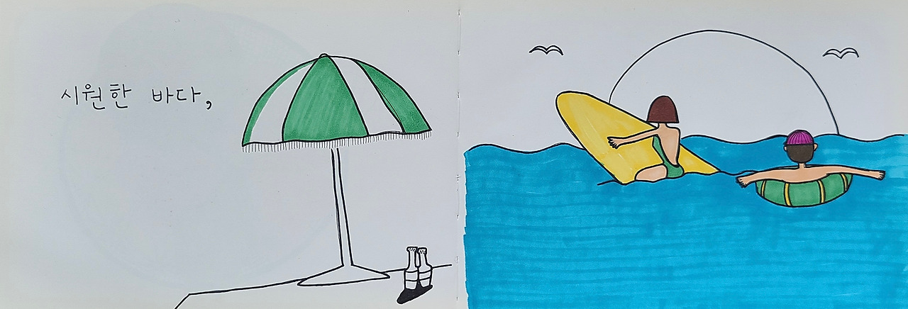 작년에 아이 어린이집에서 생일 파티에서 읽어줄 생일 동화를 만들어 보내라고 숙제를 내줬는데, 그때 처음 그림책 한 권을 만들어 보았다. 마커로 슥슥 그린 허술한 그림책이었는데 아이가 그 그림책을 너무 좋아했다. 그때 이후 종종 그림책을 만든다. 너무 재미있어서 친구들을 불러 모아 같이 만들어보기도 했다. 번뜩 그런 생각이 들었다. 이걸 더 많은 사람들과 함께 해보면 어떨까.