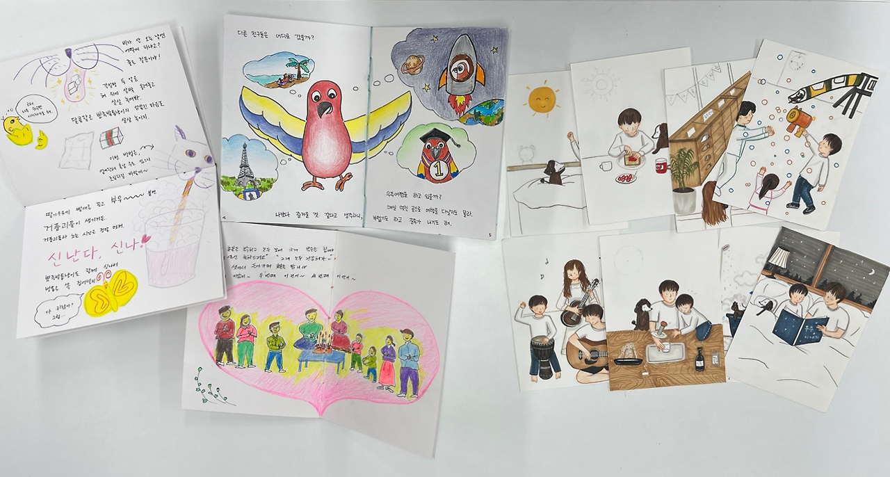 아무튼 그래서 했다. 한 달 동안 일주일에 한 번, 네 번의 수업이 끝나자 다섯 권의 그림책이 나왔다. 그리고 내게도 확실한 몇 가지가 남았다.