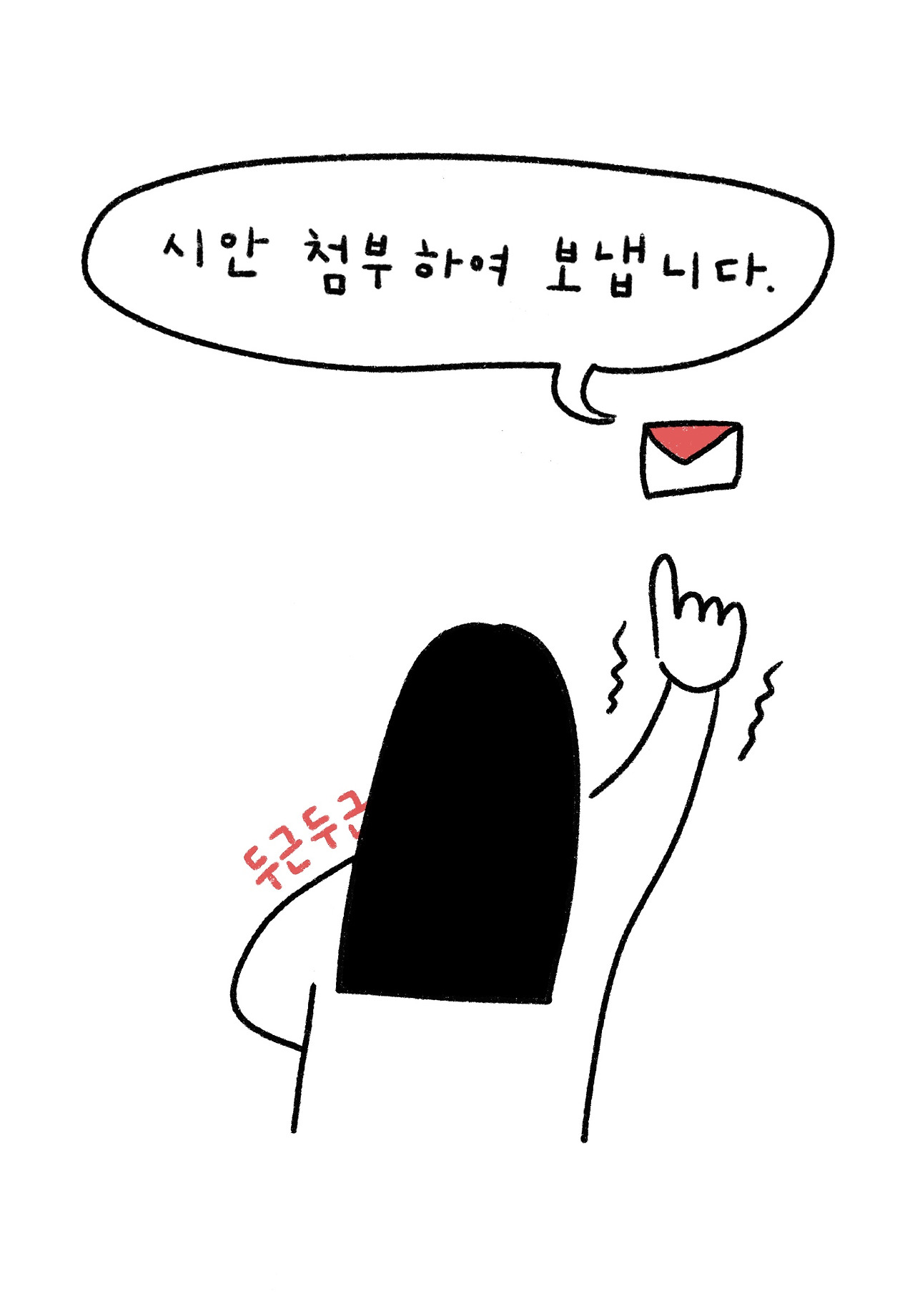 언제 들어도 심장이 두근거리는 한 마디를 고르라면, 주저 없이 이 문장을 고르겠습니다. PDF 파일을 열기 전, 심호흡을 합니다. 시안이 마음에 들면 종일 깨춤을 추고, 예상한 결과물이 아닐 땐 시름시름 앓거든요. '아 내가 전달을 제대로 못했나?' 자책하면서요.