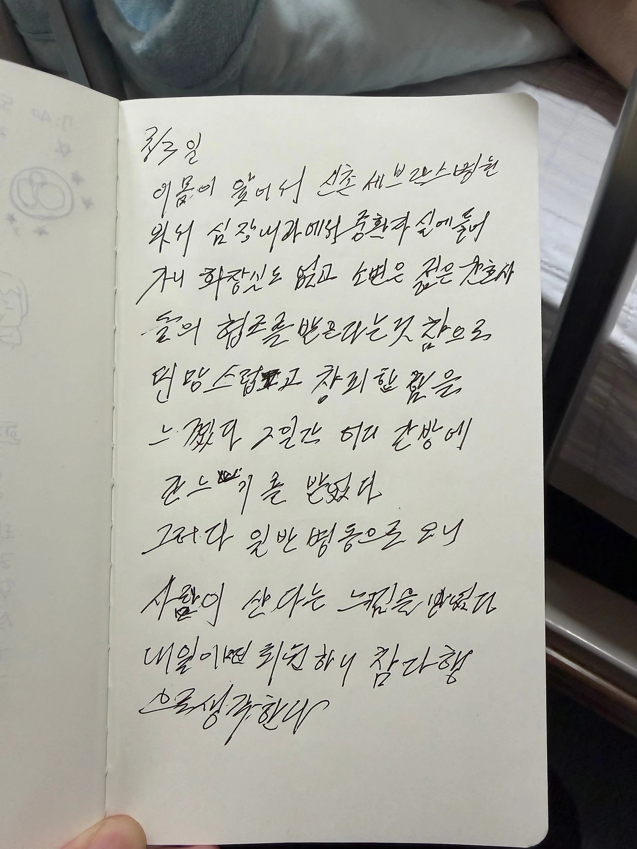 아픈 할머니를 돌보고 병원을 동행하고 수발을 드는 일. 눈물과 불안감, 물리적 폭력이 없을 뿐 상황은 내게 폭력적이었다. 같은 대학생인데 누군가는 녹음 가득한 교정을 누비고 나는 병원 안내문을 들고 번호표가 뜨기를 멍하니 기다린다.