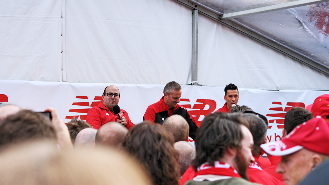 다시 예정된 시각이 되자 이언 러쉬가 무대에 올랐고 뒤이어 하만과 가르시아도 함께 자리에 앉았다. 이런저런 인터뷰 세션을 진행한 뒤 이들과 직접 인사할 수 있는 시간이 주어졌다. 해가 저문 광장에서 벌벌 떨며 기다린 보람이 최고조에 다다른 순간이었다. 사실 러쉬는 내가 직접 경기를 보고 자란 세대가 아니기 때문에 큰 감흥이 없었지만, 하만과 가르시아는 그저 바라보는 것만으로 고교 2학년 때로 돌아간 것 마냥 행복했다.