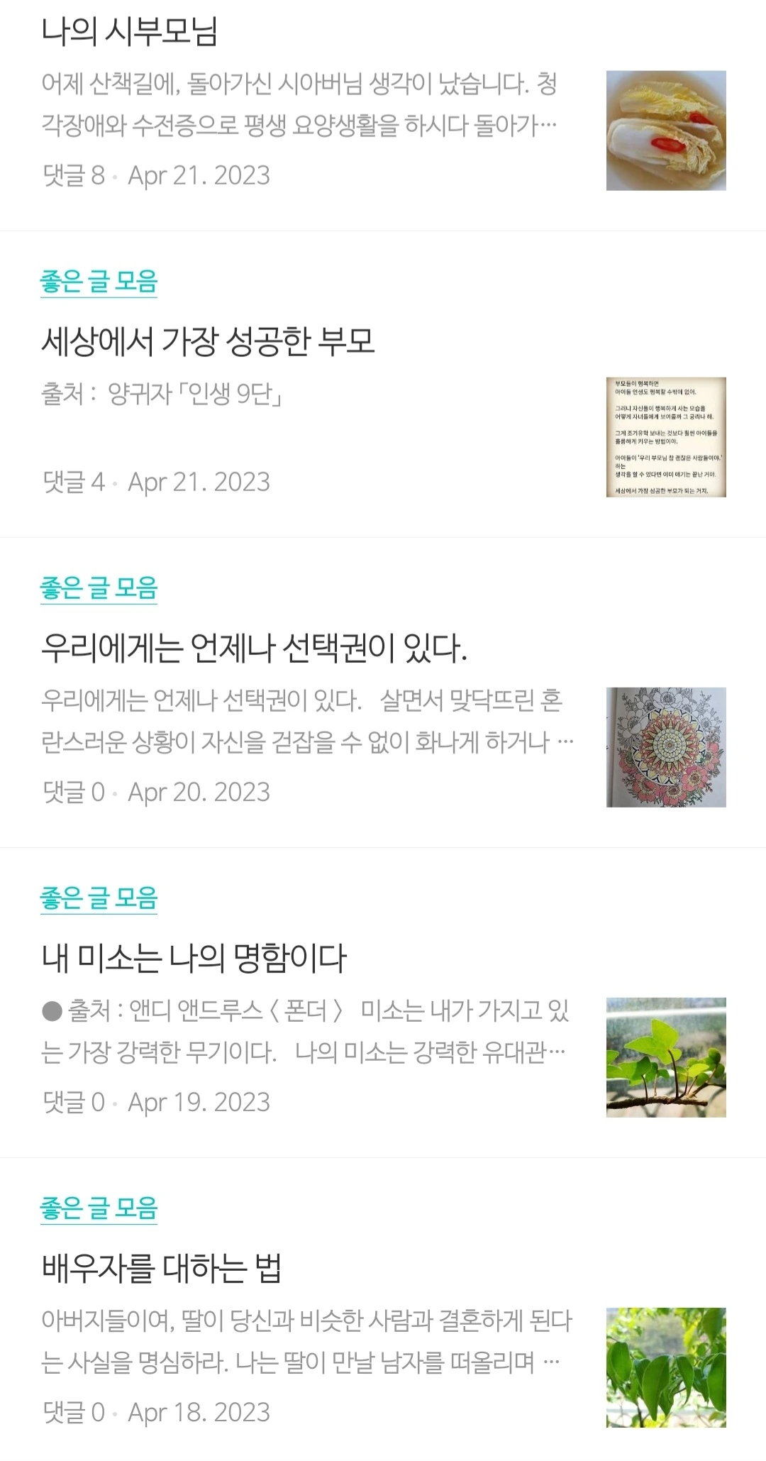 오랜만에 쓴 제 글 '나의 시부모님'이 오늘 아침까지 조회수가 5천을 넘었어요. 어제저녁, 퇴근한 남편과 밥을 먹으며 조회수 3천이라고 자랑을 했는데, 먹고 나니 4천이 되었더라고요. 마치, "너, 잘 왔다. 기다리고 있었어"라는 메시지 같았어요.