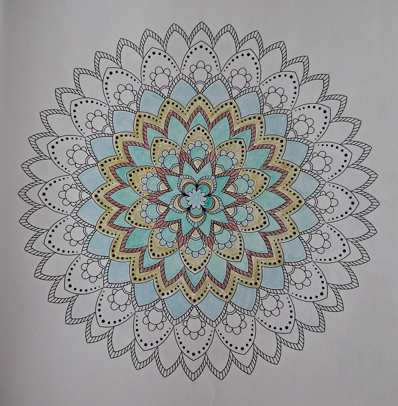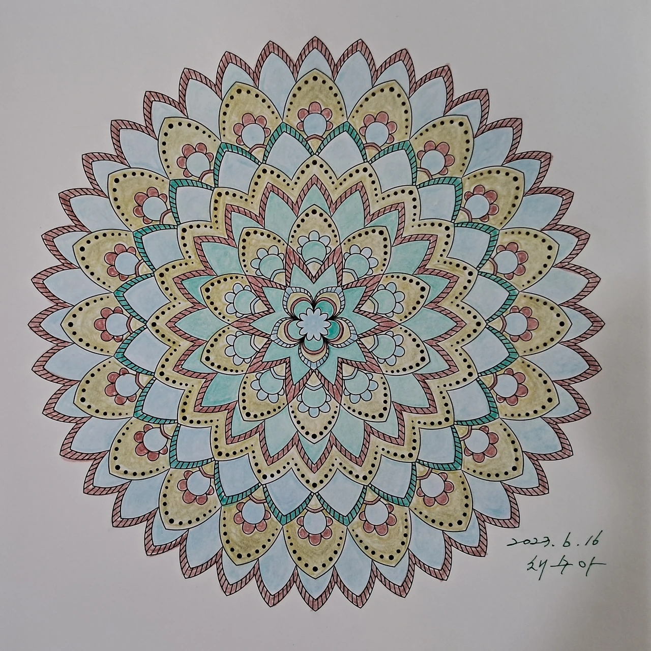 만다라 색칠 완성 과정이에요