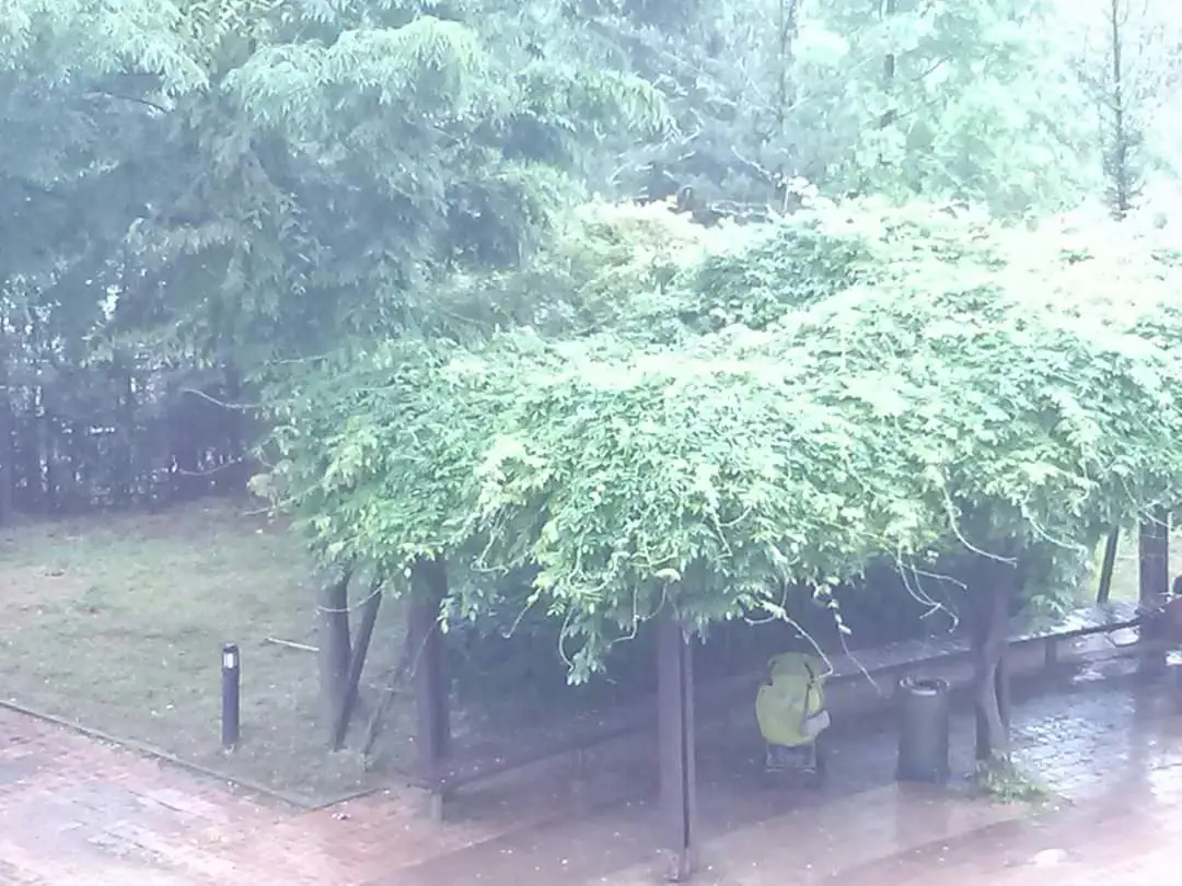 글을 쓰다 머리를 식히려고 베란다 창밖을 바라보았다. 비는 주룩주룩 내리는데, 덩굴나무 지붕이 있는 쉼터에 유모차와 그 뒤에 서 있는 한 엄마가 보였다.