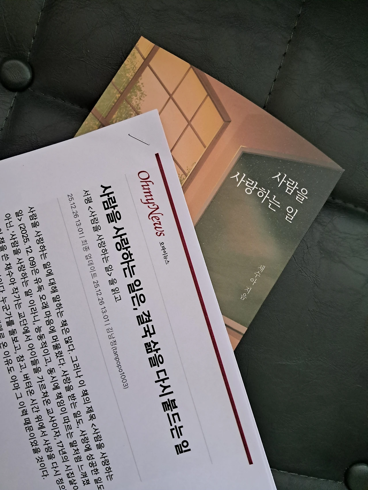 제 책에 관심이 많은 남편이, 인터넷 검색을 하다가 오마이뉴스에 실린 서평을 출력해 왔습니다. 저는 이미 알고 있었지만, 다시금 감사함이 올라왔어요