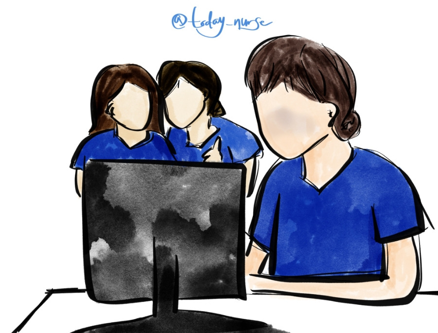 내가 독립한지 얼마안 된 시기였다. 동기는 이브닝, 나는 나이트였다. 동기는 내게 인계를 끝내고도 간호사 스테이션으로 향하지 않고 쭈뼛대며 환자들이 모여있는 곳의 전산 앞에 있었다.