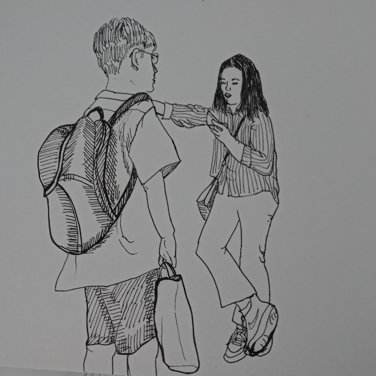 마치 아주 오래된 연인을 보는듯한 기분. 남자의 눈이 여자를 향하는 거 같지만 아니다. 그 뒤 유리에 비친 자신을 보는 게 틀림없다. 만나기는 하지만 각자의 생각과 흐름대로 놓아두는 시기.