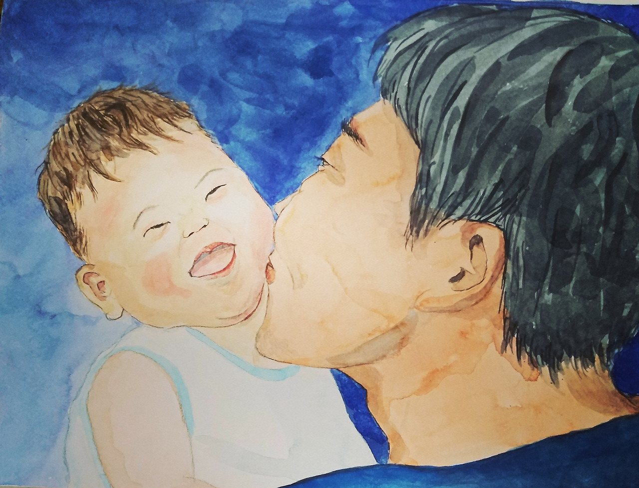웃는 아이. 사랑스러워 어쩔 줄 모르는 아빠. 우연히 발견한 사진인데 저장해놓고 마음의 평화가 필요할 때마다 종종 꺼내보다가 그림으로 그려봤다.