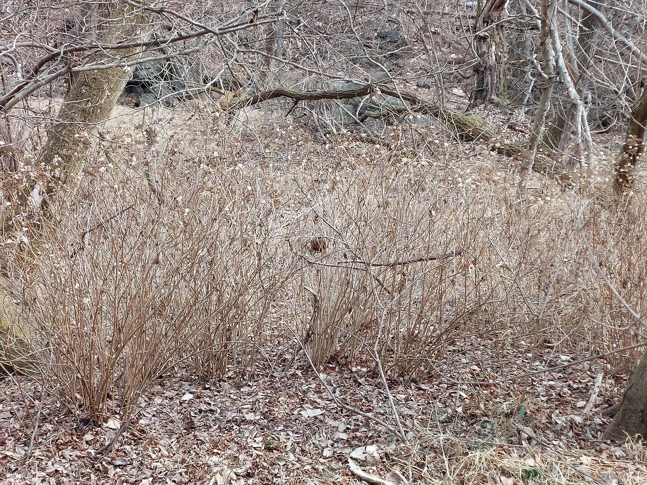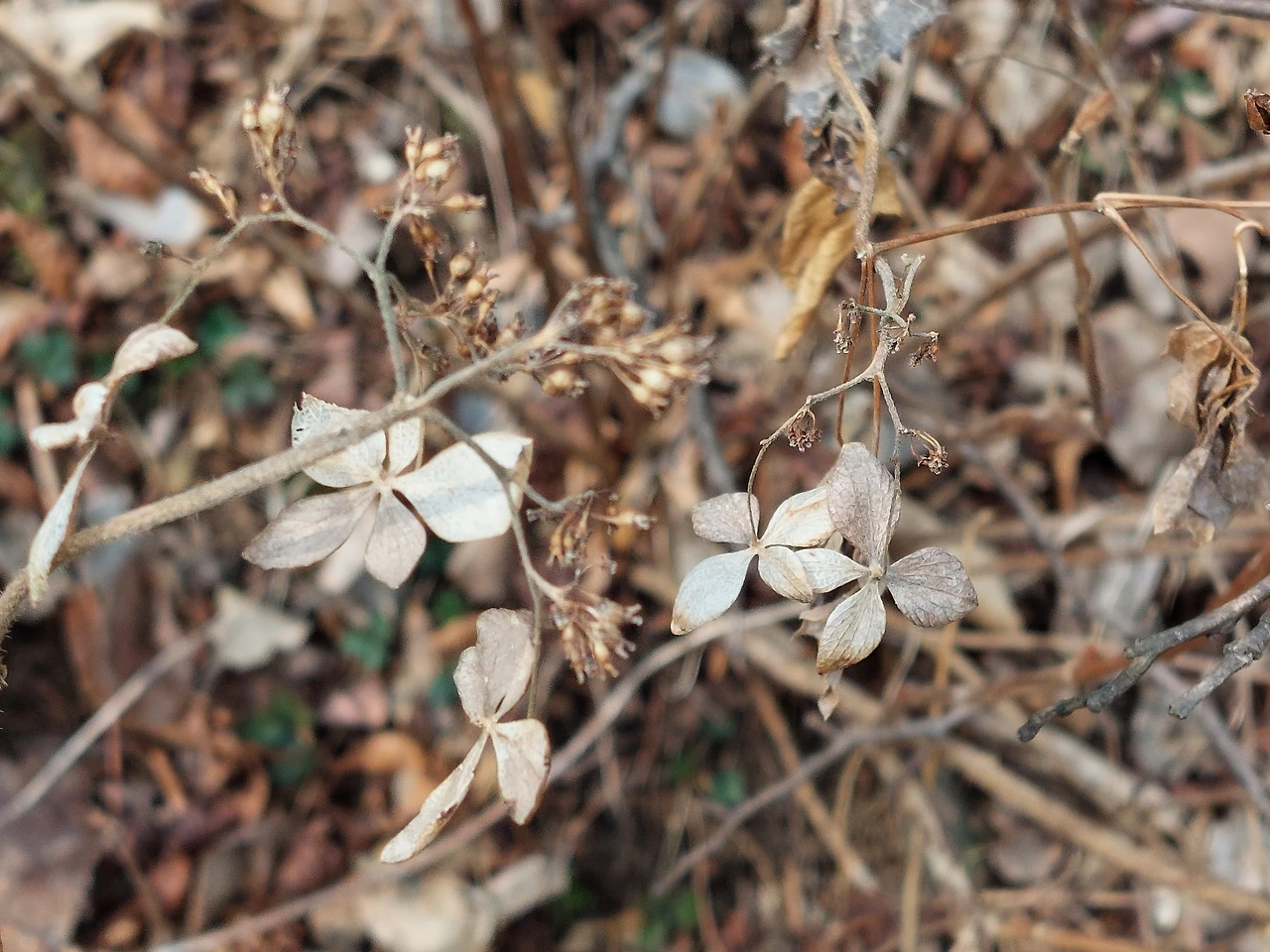 다시 산을 올랐다. 하얀 꽃 같은 것이 보였다. 벌써 꽃이 피었을 리는 없고, 뭘까? 가까이 가보니 꽃받침인지 이파리인지 또는 진짜 꽃인지가 겨우내 하얗게 마른 것이었다. 대칭으로 잎이 네 장 맞붙어있는데 꽃처럼 생기긴 했으나 꽃의 미덕은 없다. 자연이 만든 드라이플라워. 이번에도 사진을 찍어보았더니 분명 하얗게 반짝이던 것이 그저 다른 배경과 다름없는 마른 나뭇가지로 보였다.