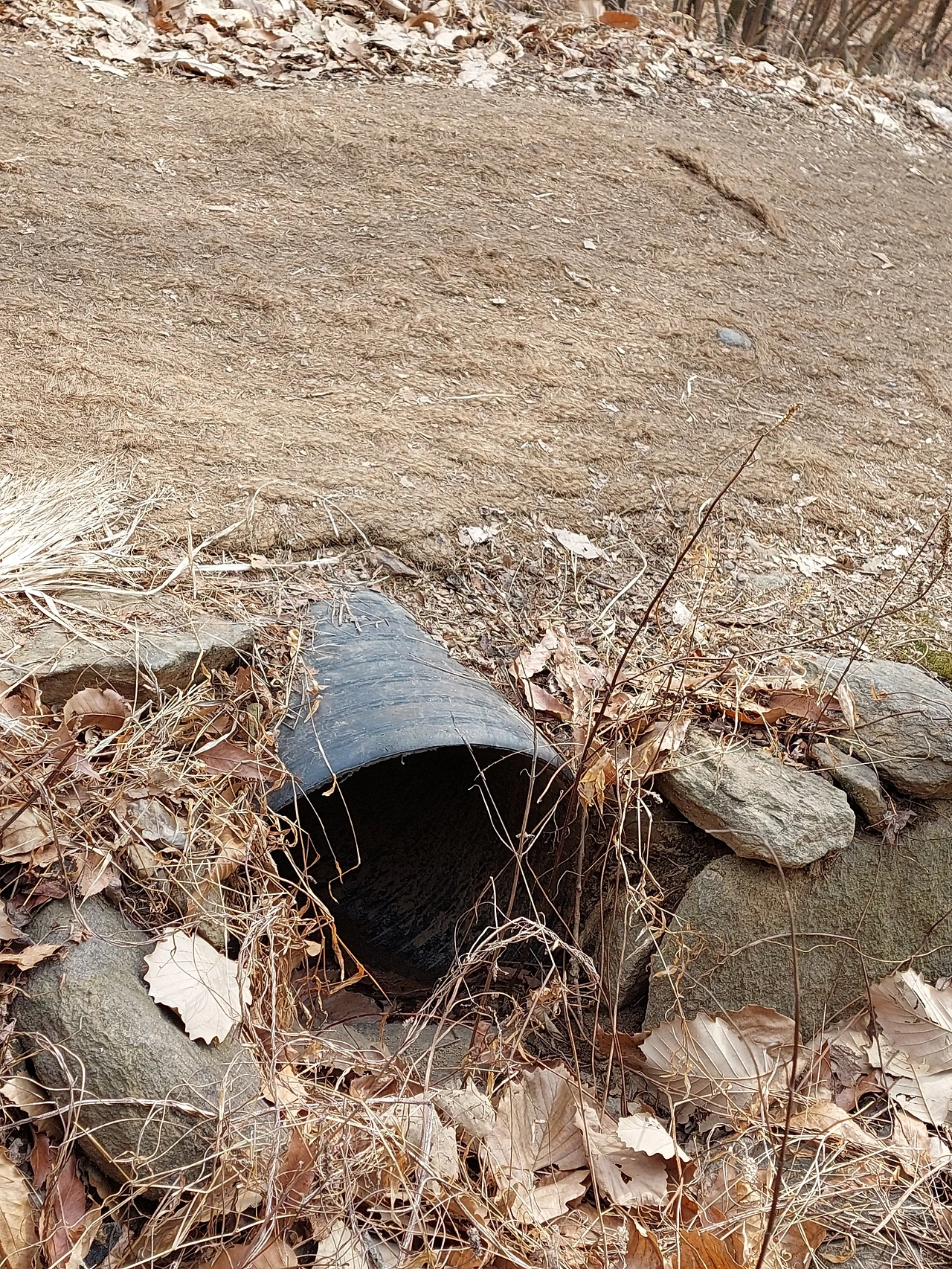 자주 보던 건데 갑자기 궁금했다. 왜 하필 여기, 이 위치일까. 이것을 심은 사람들의 시선을 따라가 보았다. 빗물이 모일만한 길이 보였다. 산길이야 어디나 울퉁불퉁하고 기슭이야 어디나 기울어있지만 그럼에도 가장 적절한 지점에 관을 심는 사람들. 잠시 그들의 수고를 떠올려본다. 그들의 일이었을 것이고 이왕이면 잘 해내고 싶었을 거다. 빗물이 잘 빠져서 우리 같은 등산객은 덜 젖고 덜 질척이며 큰 사고 없이 산을 즐길 수 있다. 제대로 하지 않아 문제가 있는 뉴스도 많지만 대부분의 사람들은 이렇게 성실히, 대부분의 세상일은 이렇게 별문제 없이 제자리를 잡고 있다.